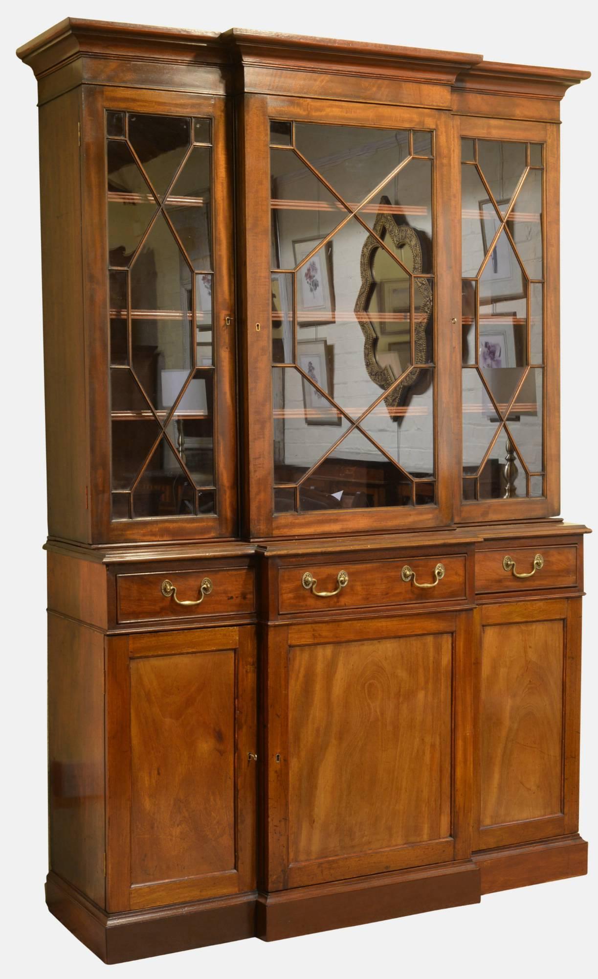 George III Style Mahogany Breakfront Bookcase