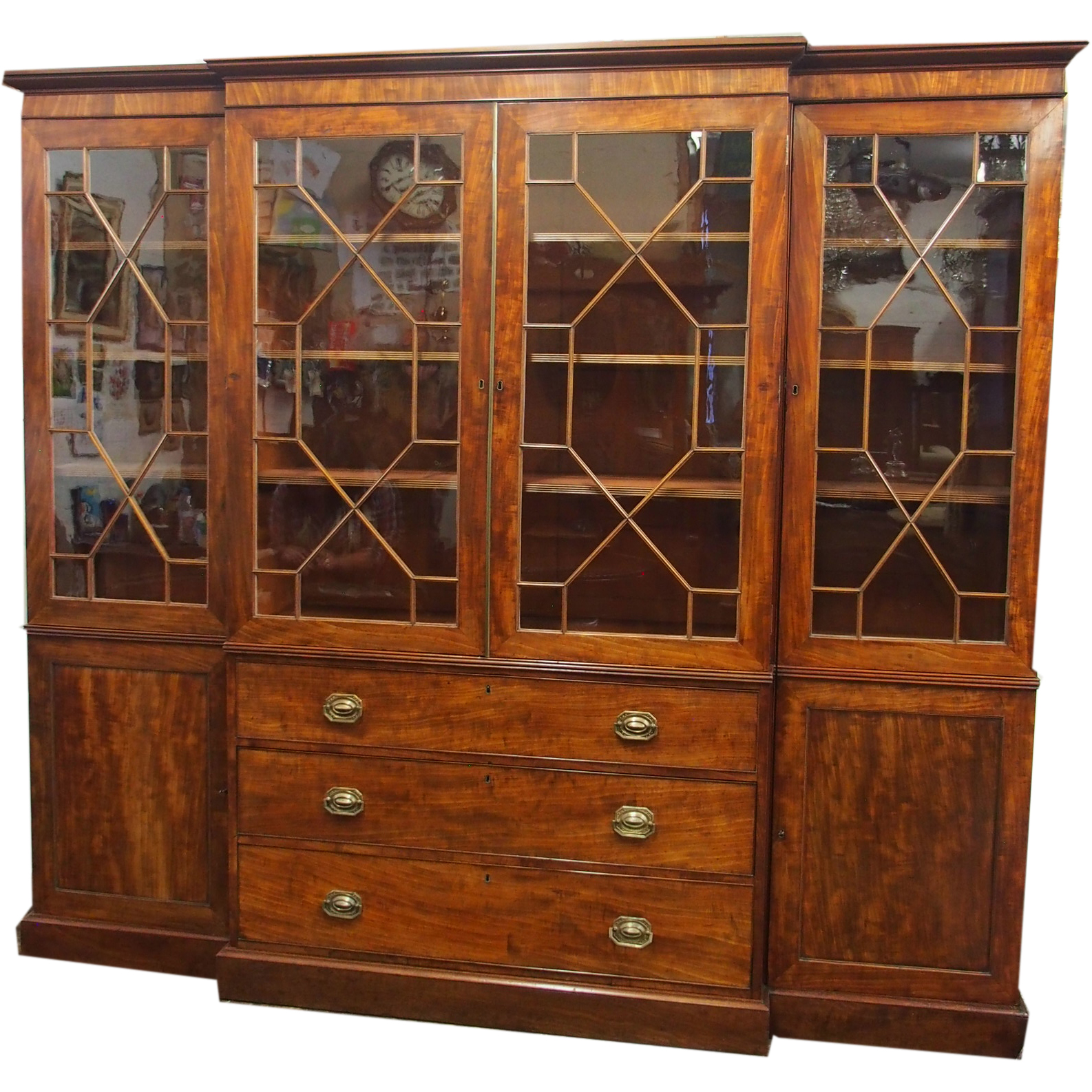 George III Style Mahogany Breakfront Bookcase c.1850 (1 of 1)