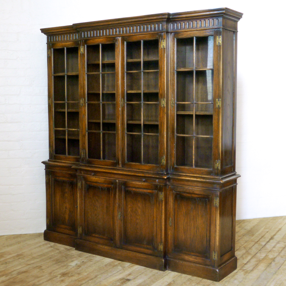 George III Style Oak Breakfront Bookcase