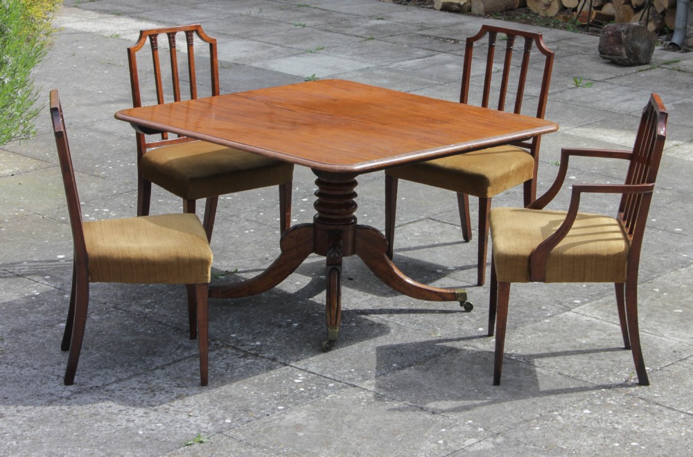George Ill Mahogany Pedestal Breakfast / Dining Table with Four Chairs