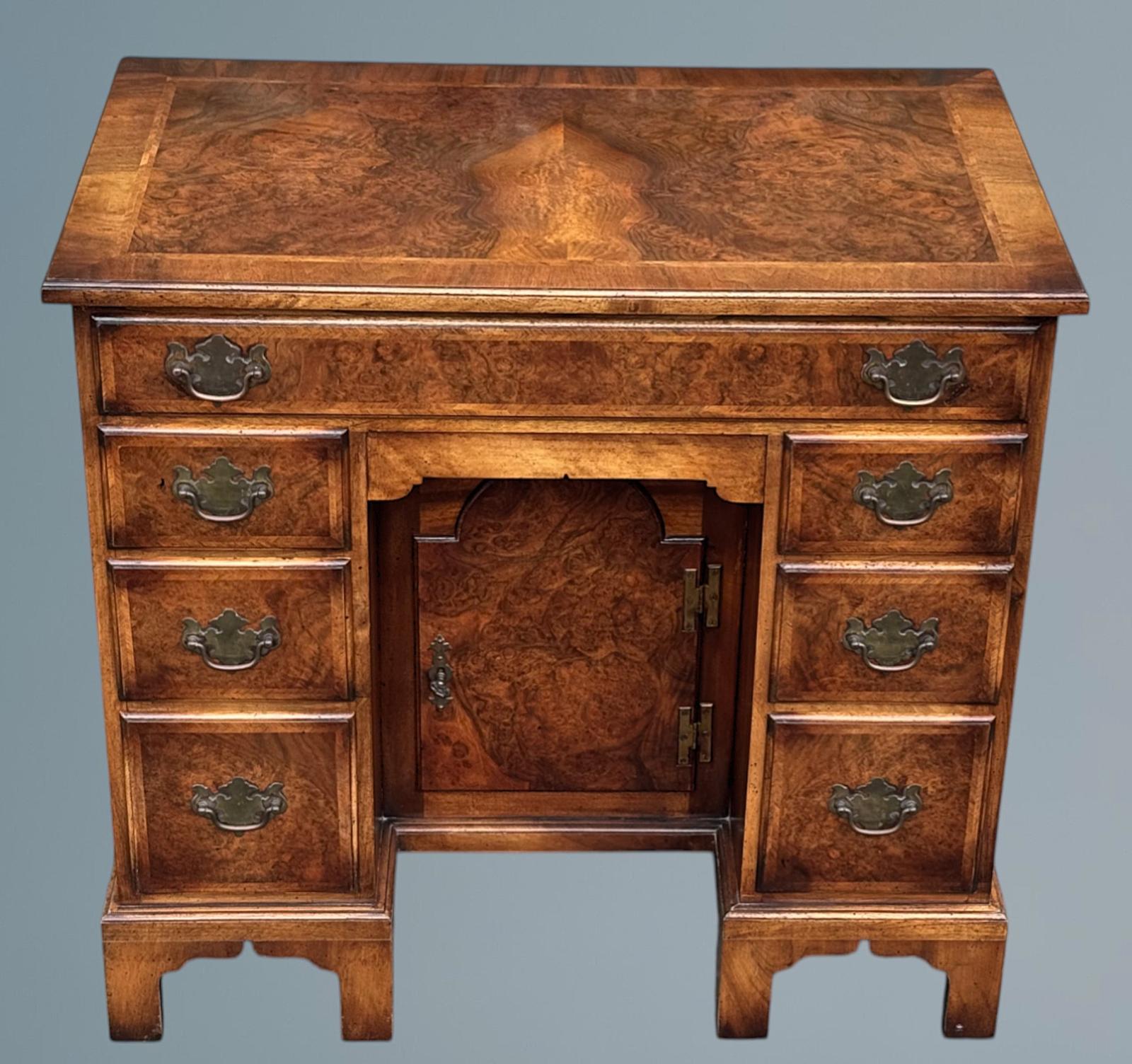 George Ist Style Walnut and Feather Banded Kneehole Desk (1 of 17)