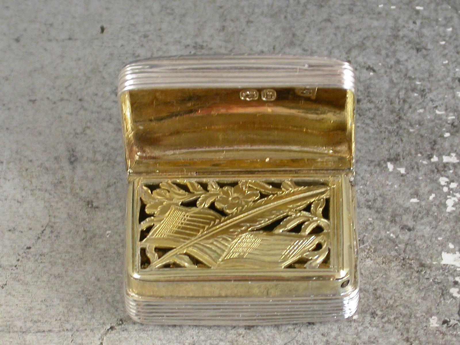 George IV Antique Silver Musical Score & Quill Pen Grille Vinaigrette by William Ellerby, London, 1823