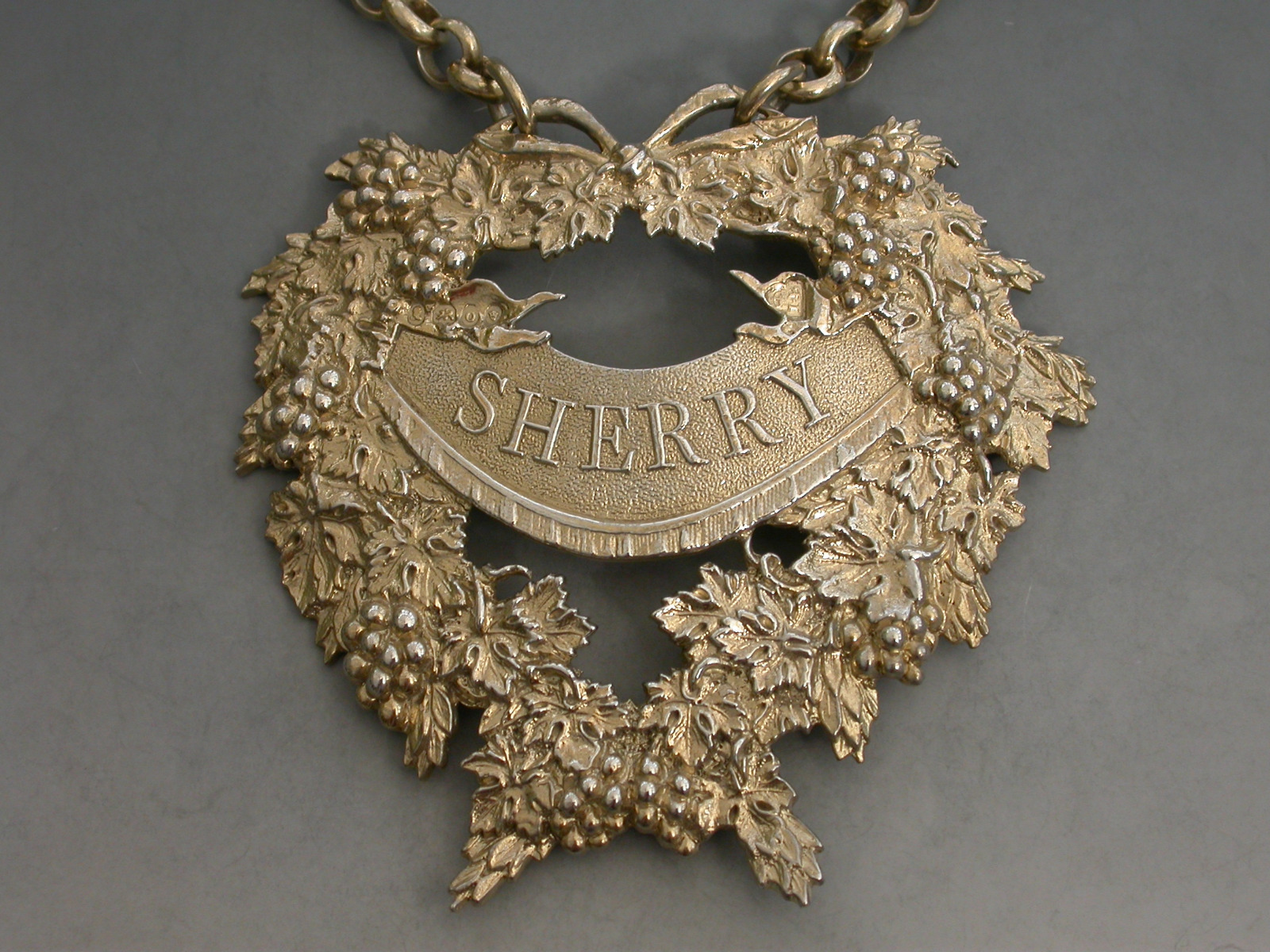 George IV Cast Silver Gilt Festooned Drapery Wine Label 'Sherry' John Bridge 1829