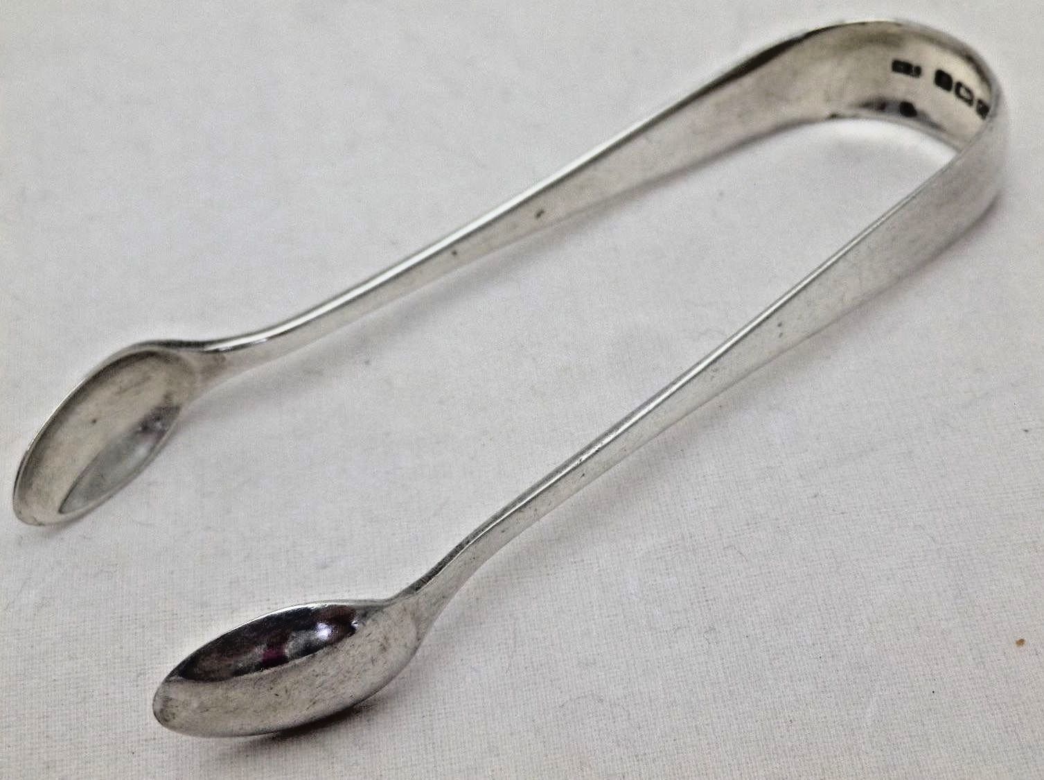 George IV Pair Solid Sterling Silver Sugar Ice Olive Bar Tongs 1931
