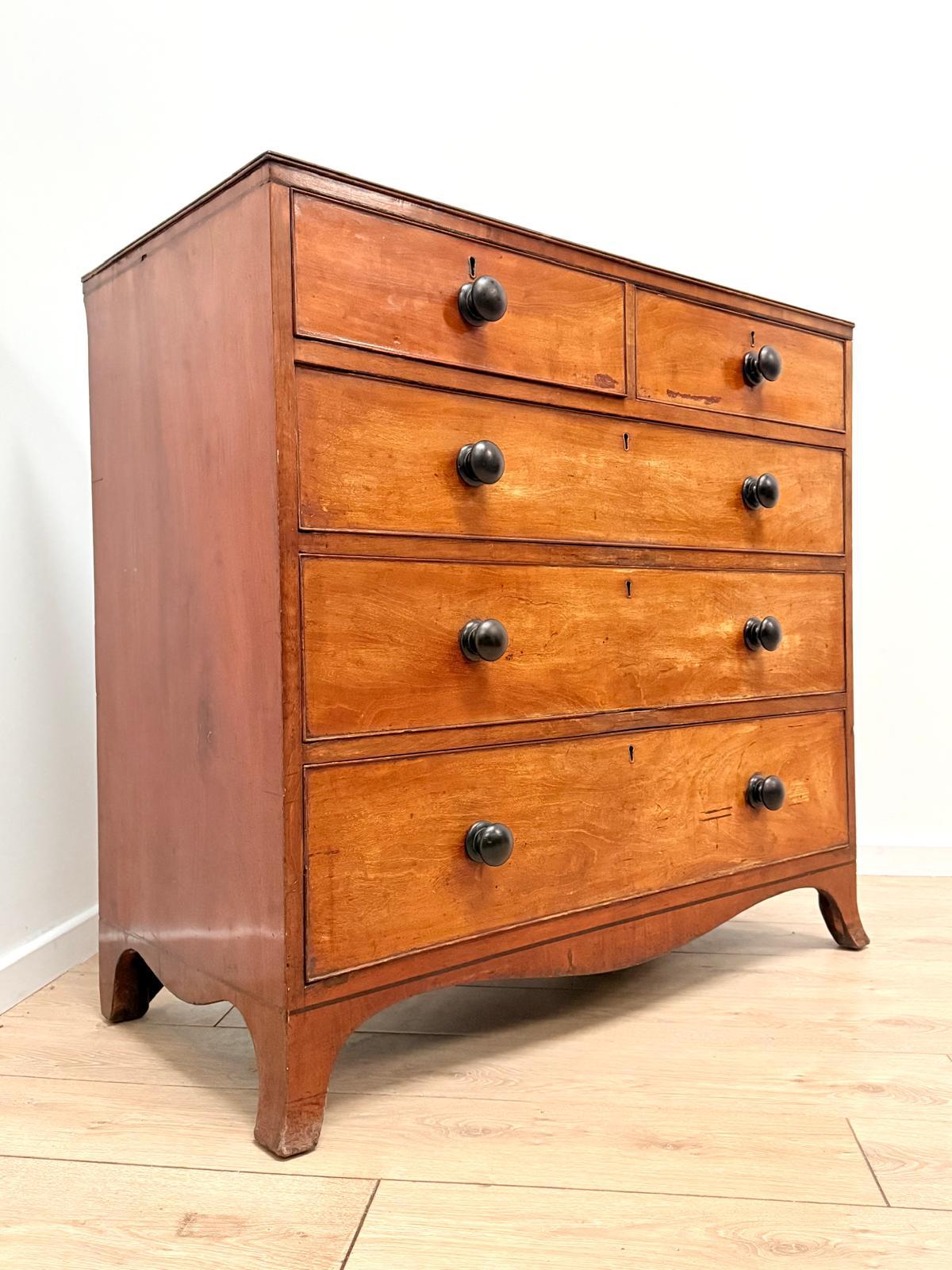 Fantastic form and a beautiful patina top quality chest of Antique drawers. You may find some marks under our wax and polish , this is absolutely what you should expect when buying genuine Antiques.