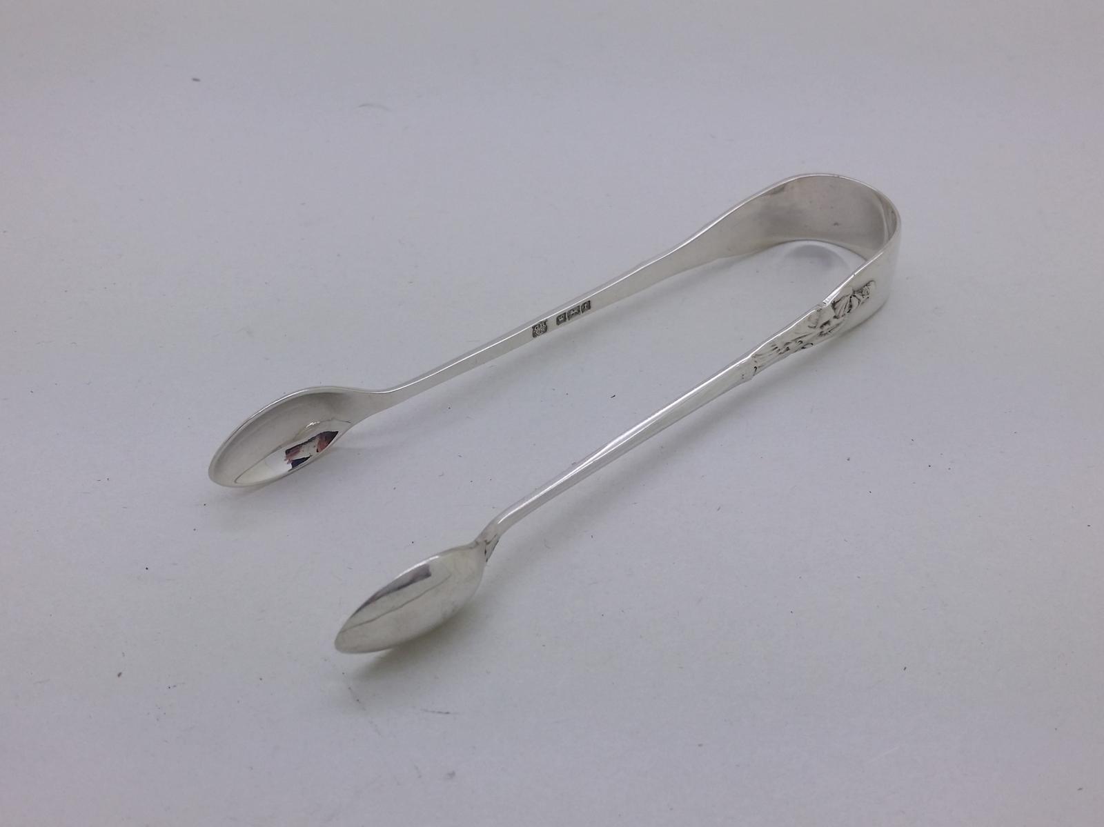 George III c.1785 Sterling Silver Bright Cut Sugar Tongs Hallmarked London