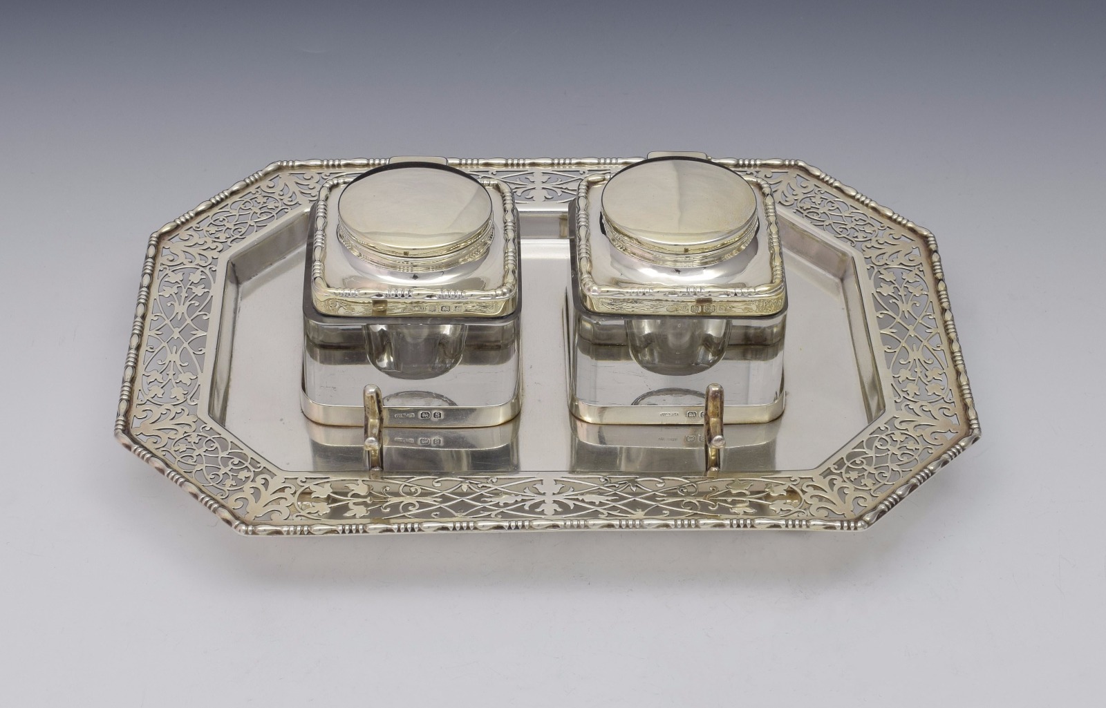 George V Octagonal Silver Double Inkstand W & R Rabone 1916