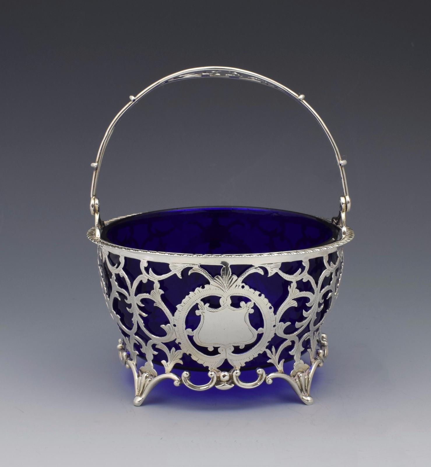 George V Silver & Blue Glass Bonbon Sugar Basket Adie Bros.