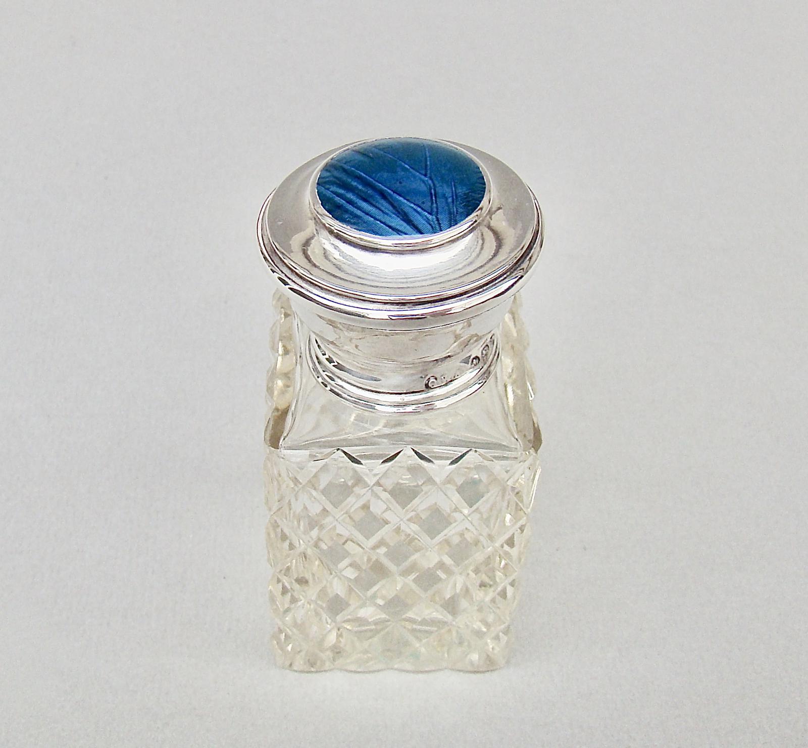 George V Silver & "Butterfly Wing" Glass Scent Bottle by G. W. Aldridge, Birmingham 1924