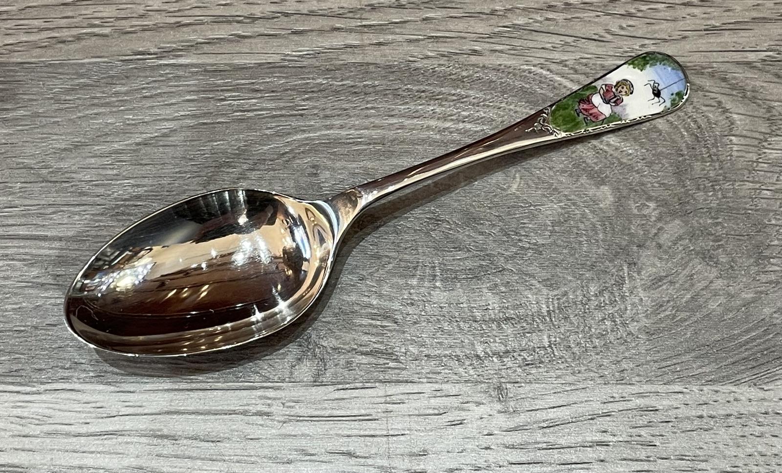 George V Silver Christening Childs Spoon with Enamel Decoration