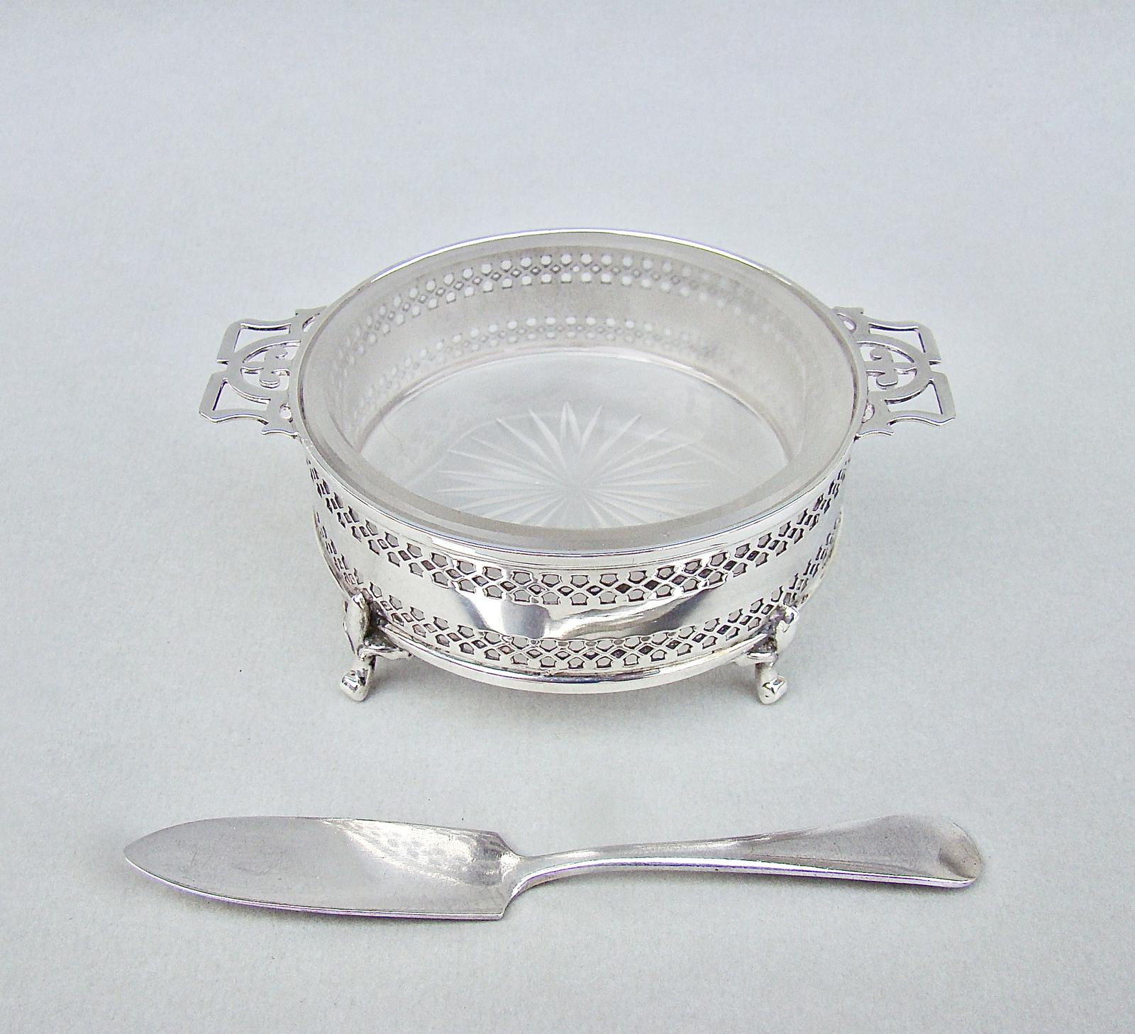 George V Silver & Frosted Glass Butter Dish by Edward Souter Barnsley, Birmingham 1919