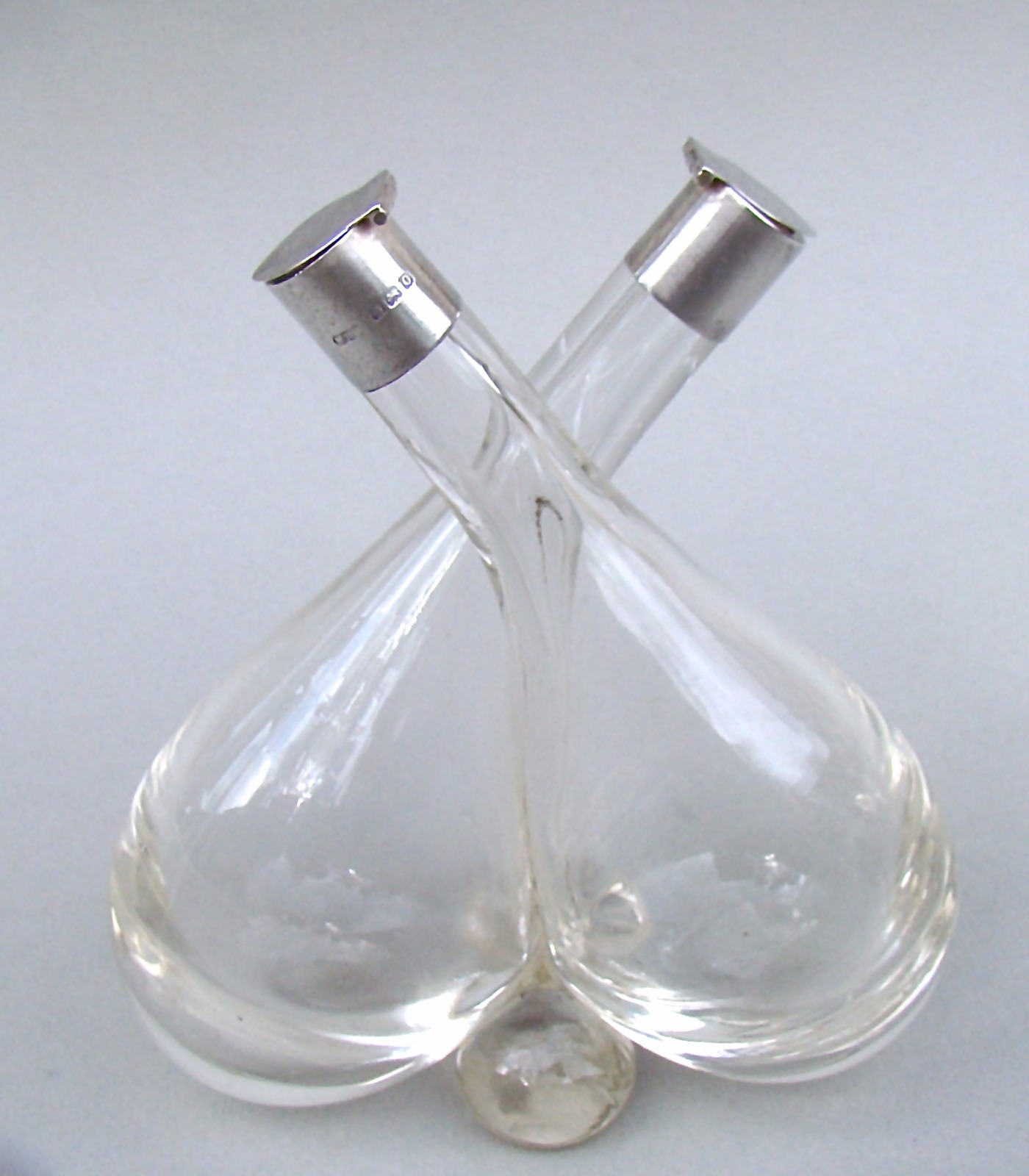 George V Silver & Glass Oil & Vinegar Bottle Set by William Haseler, Birmingham 1913