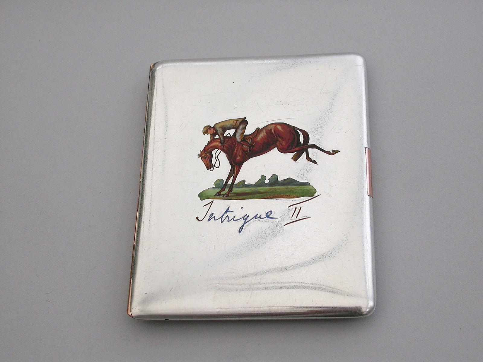 George V Silver, Gold & Enamel Cigarette Case 'Horse Racing Interest' by J C Vickery, London, 1911