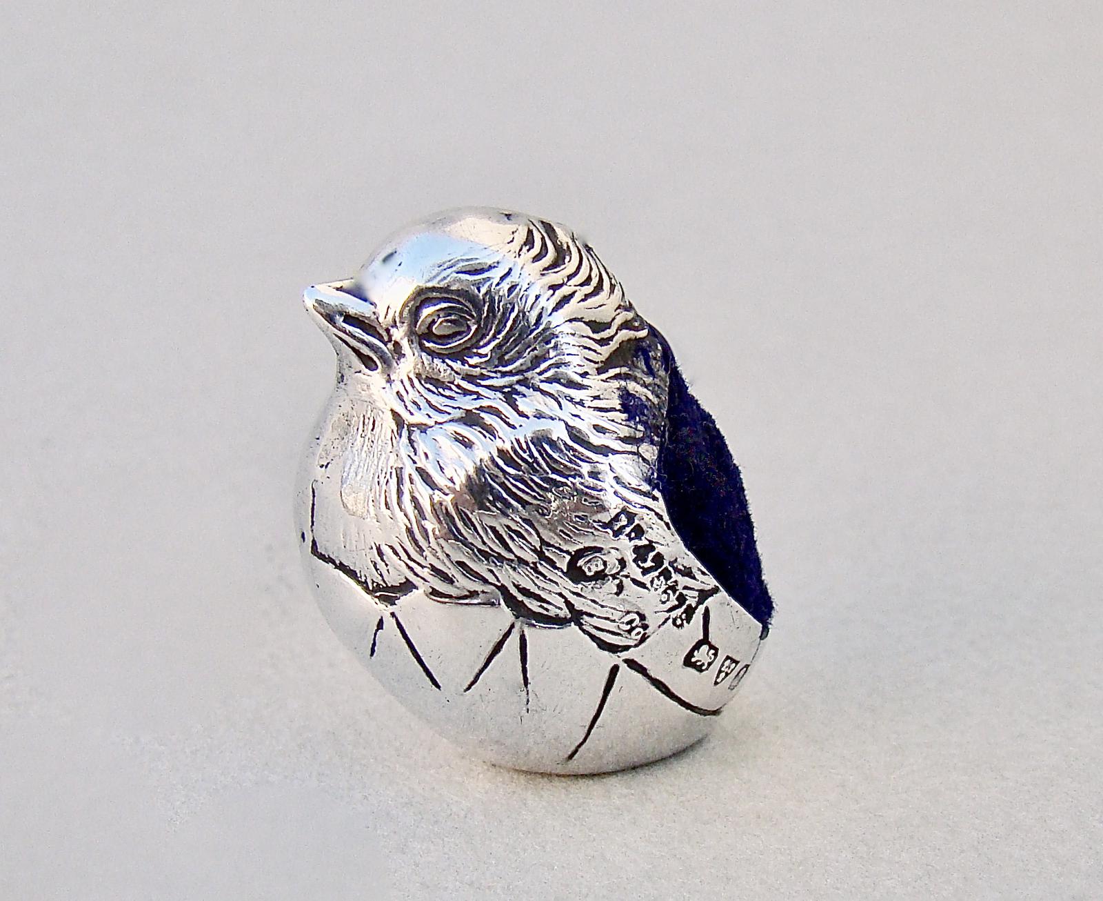 George V Silver "Hatching Chick" Pin Cushion by Sampson Mordan & Co, Chester 1916