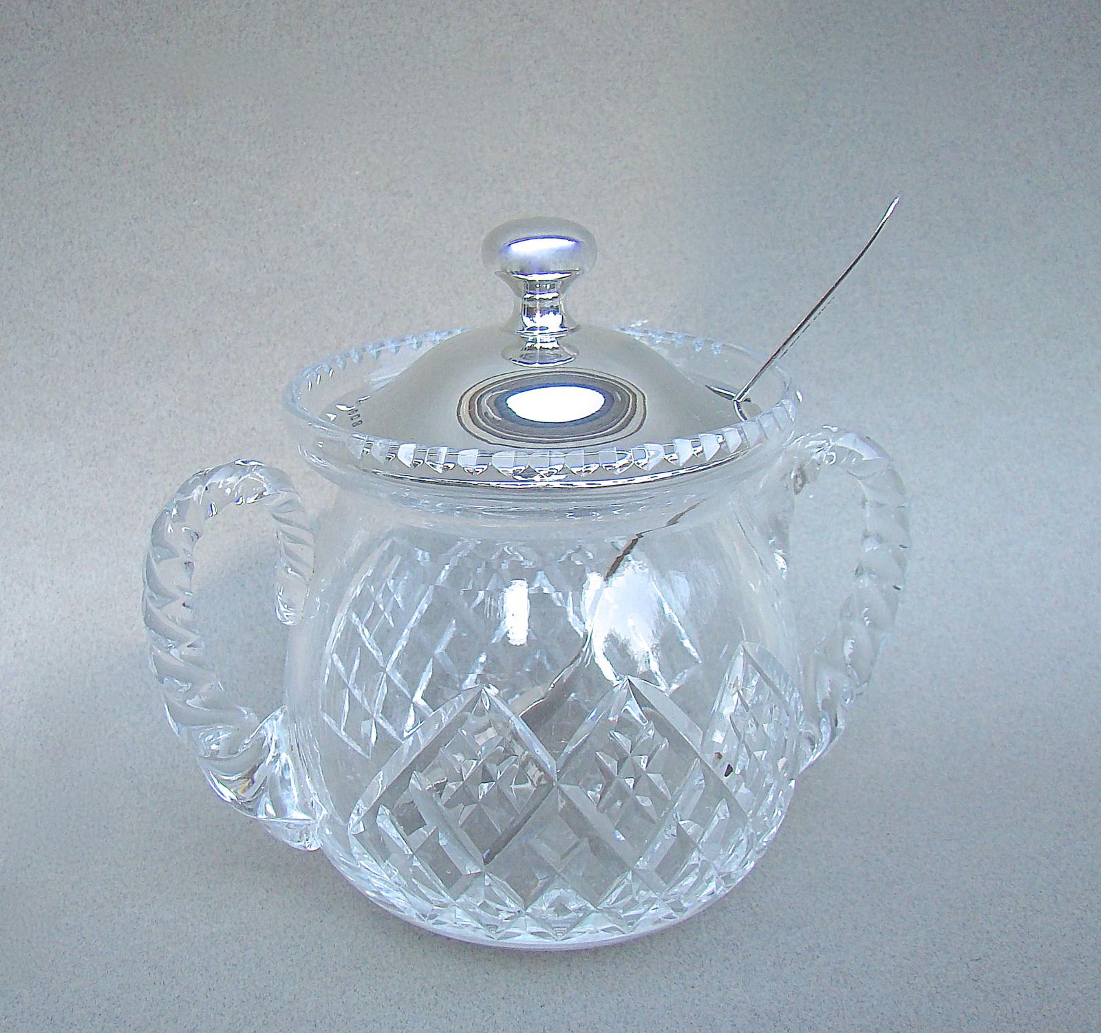 George V Silver & Hobnail Cut Glass Preserve Jar by Sanders & Mackenzie, Birmingham, 1927