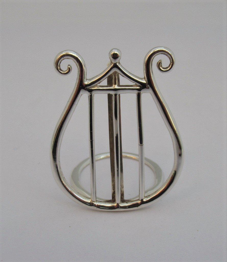 George V, Silver Lyre / Musical Instrument Menu / Card Holder, Saunders & Shepherd, Chester 1914