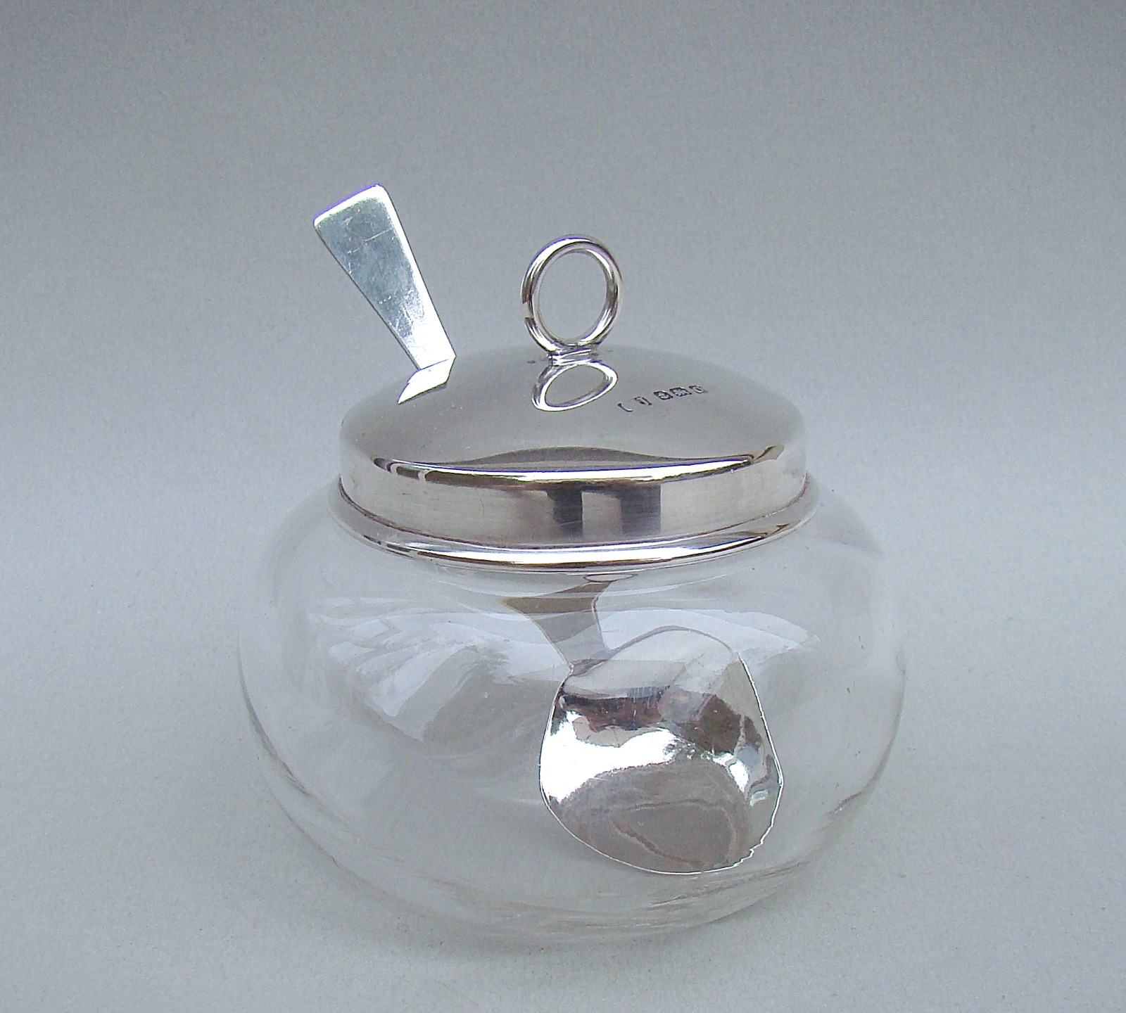 George V Silver Mounted Preserve Jar & Spoon by George Unite, Birmingham 1913