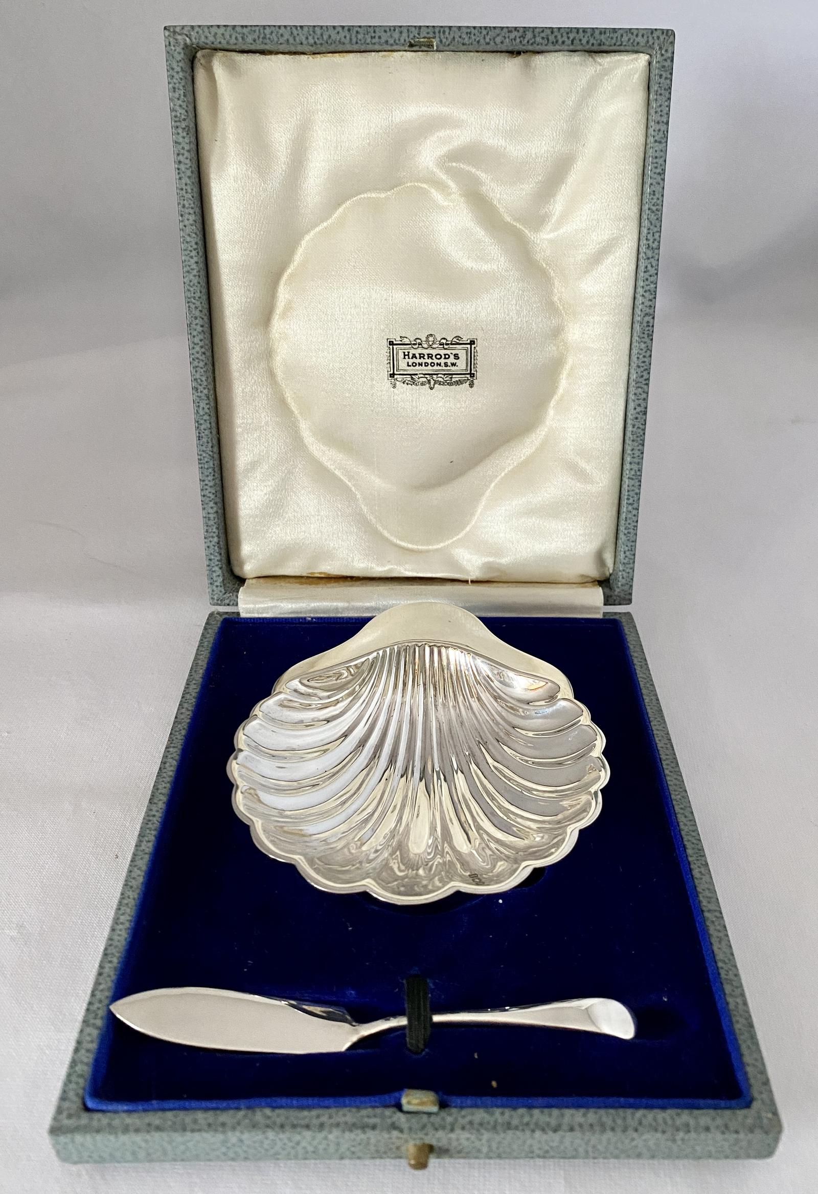 George V Silver Shell Butter Dish & Knife, Sheffield 1936