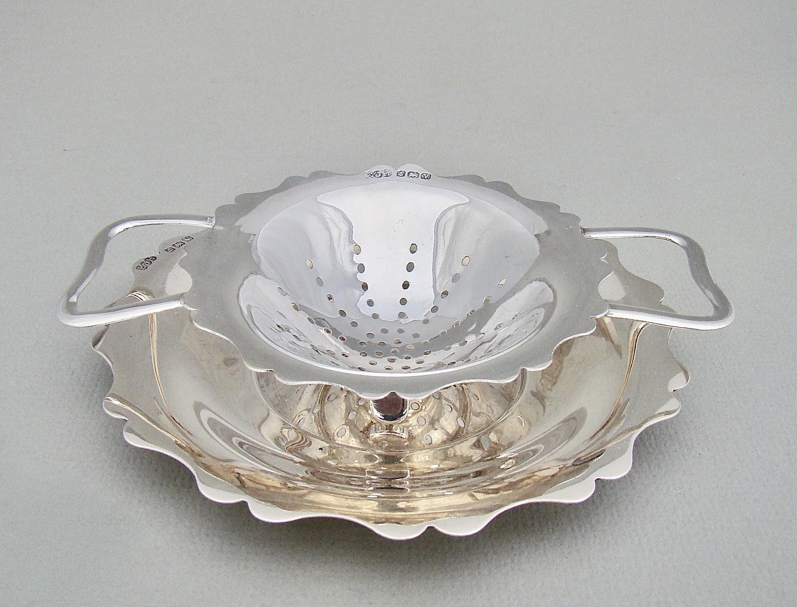 George V Silver Tea Strainer & Stand by E. J. Houlston, Birmingham 1920