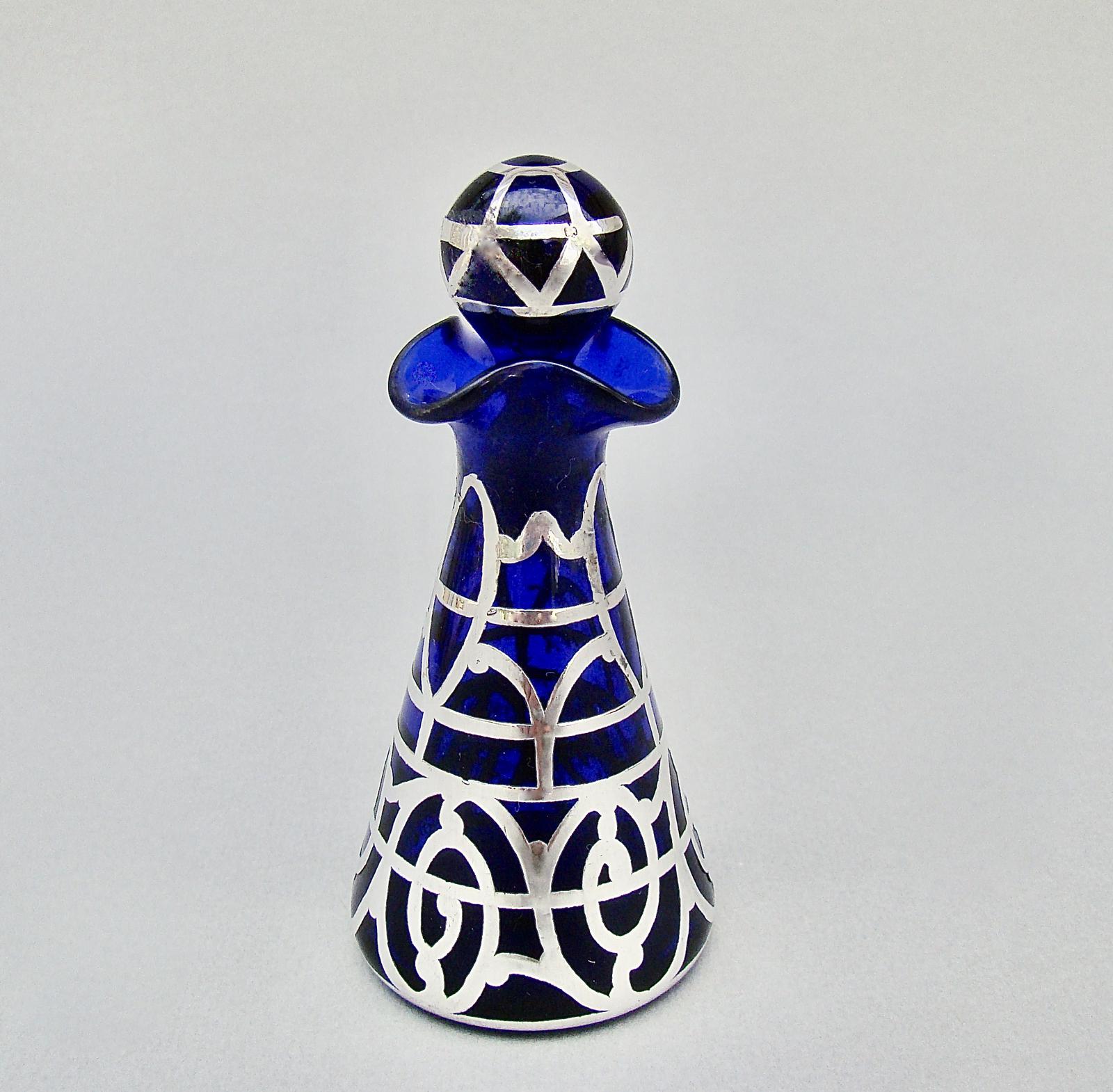 George V Sterling Silver & Bristol Blue Glass Scent Bottle, Birmingham 1914