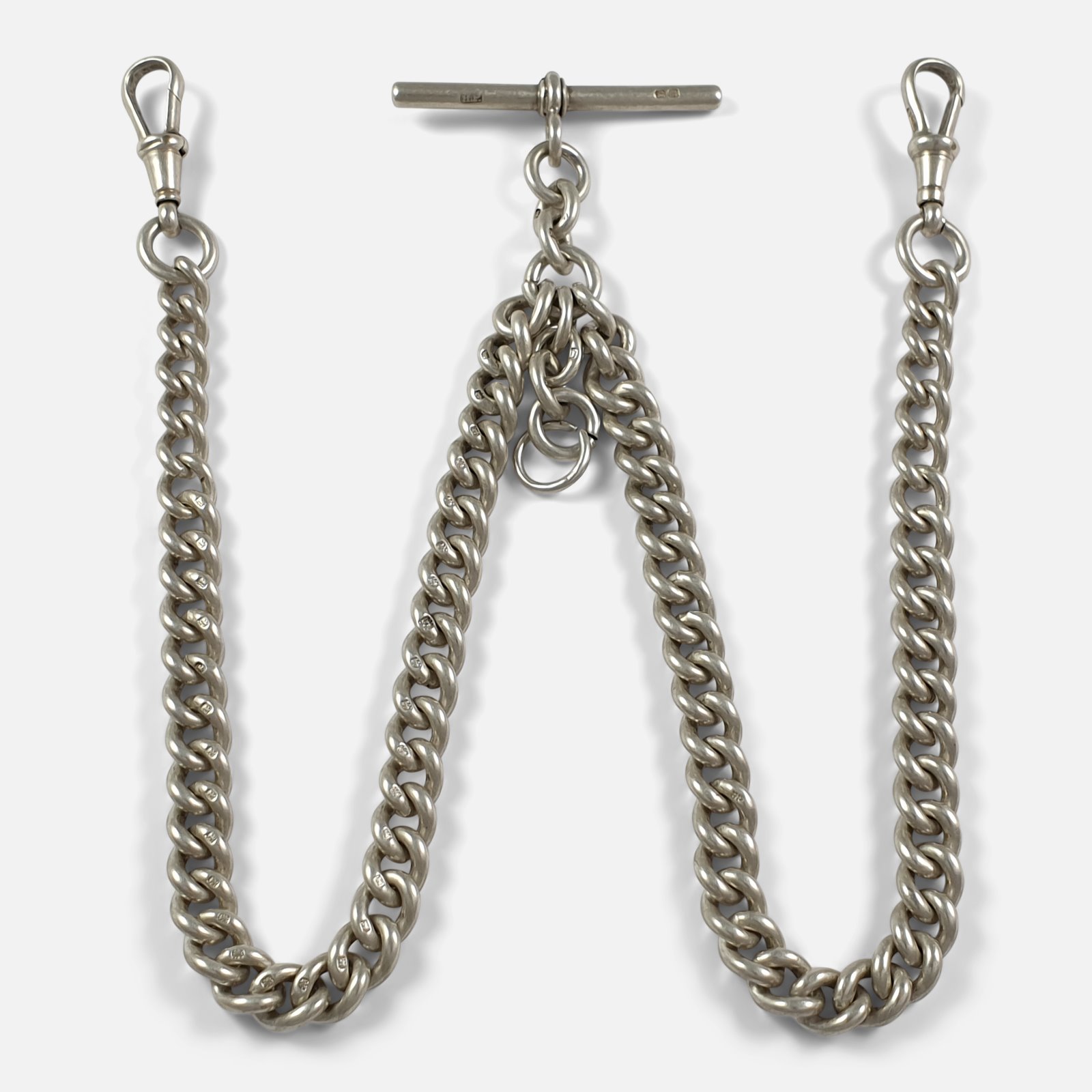 George V Sterling Silver Double Albert Watch Chain 1917