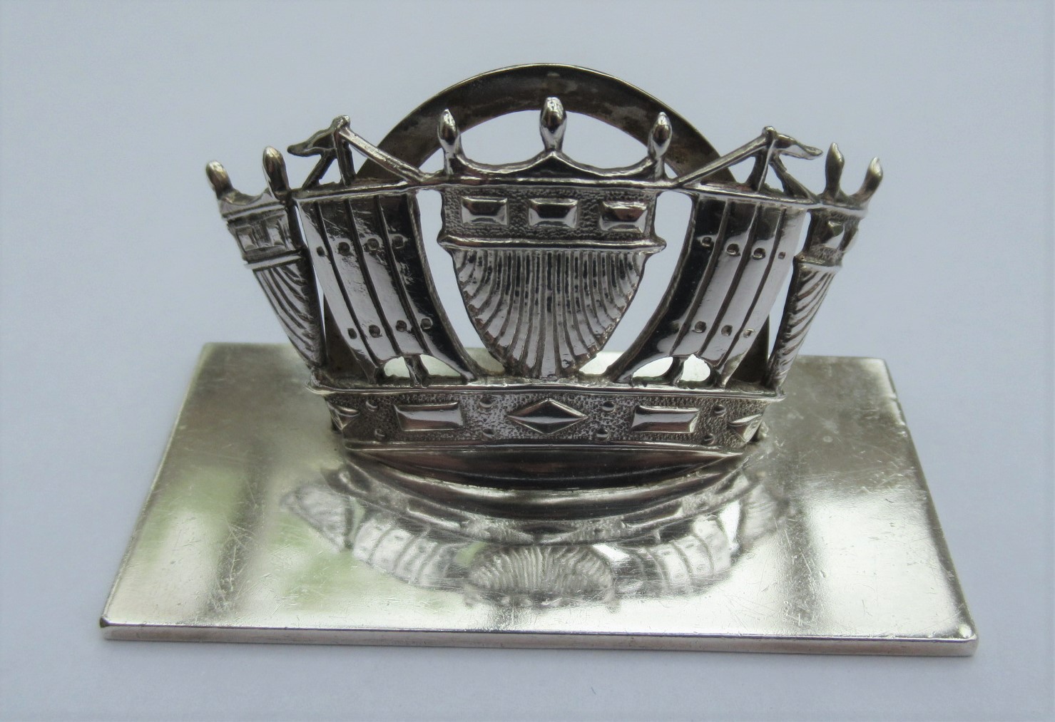 George V Sterling Silver Royal Navy Crown Menu / Card Holder, John William Barrett, Chester 1920