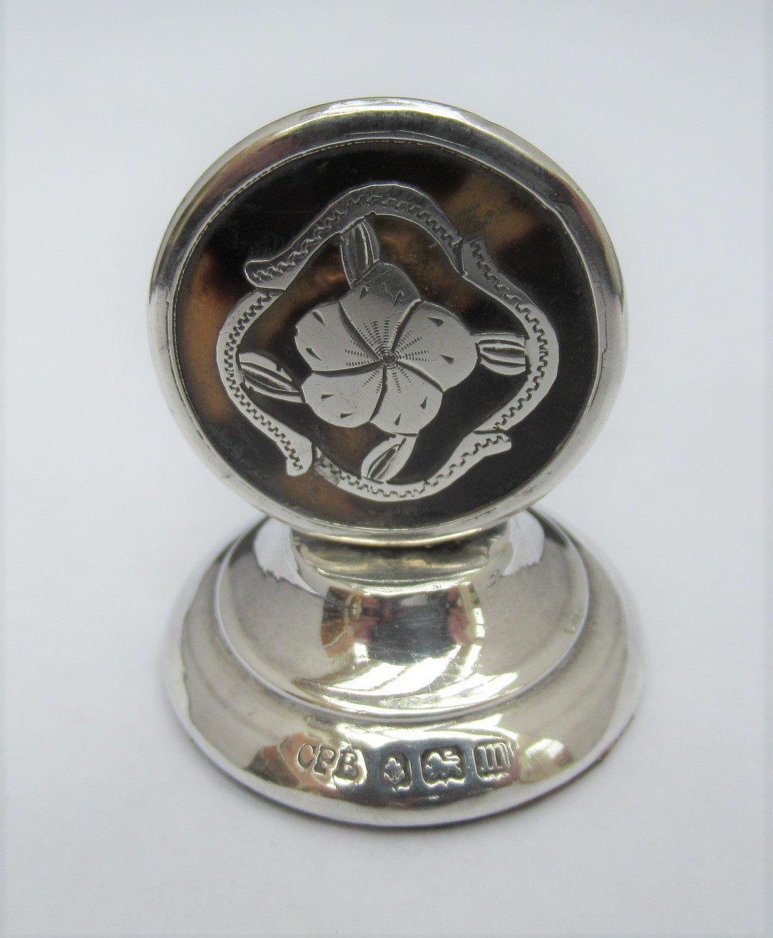 George V Sterling Silver & Tortoiseshell Menu or Place Card Holder, Charles Penny Brown, Birmingham 1911