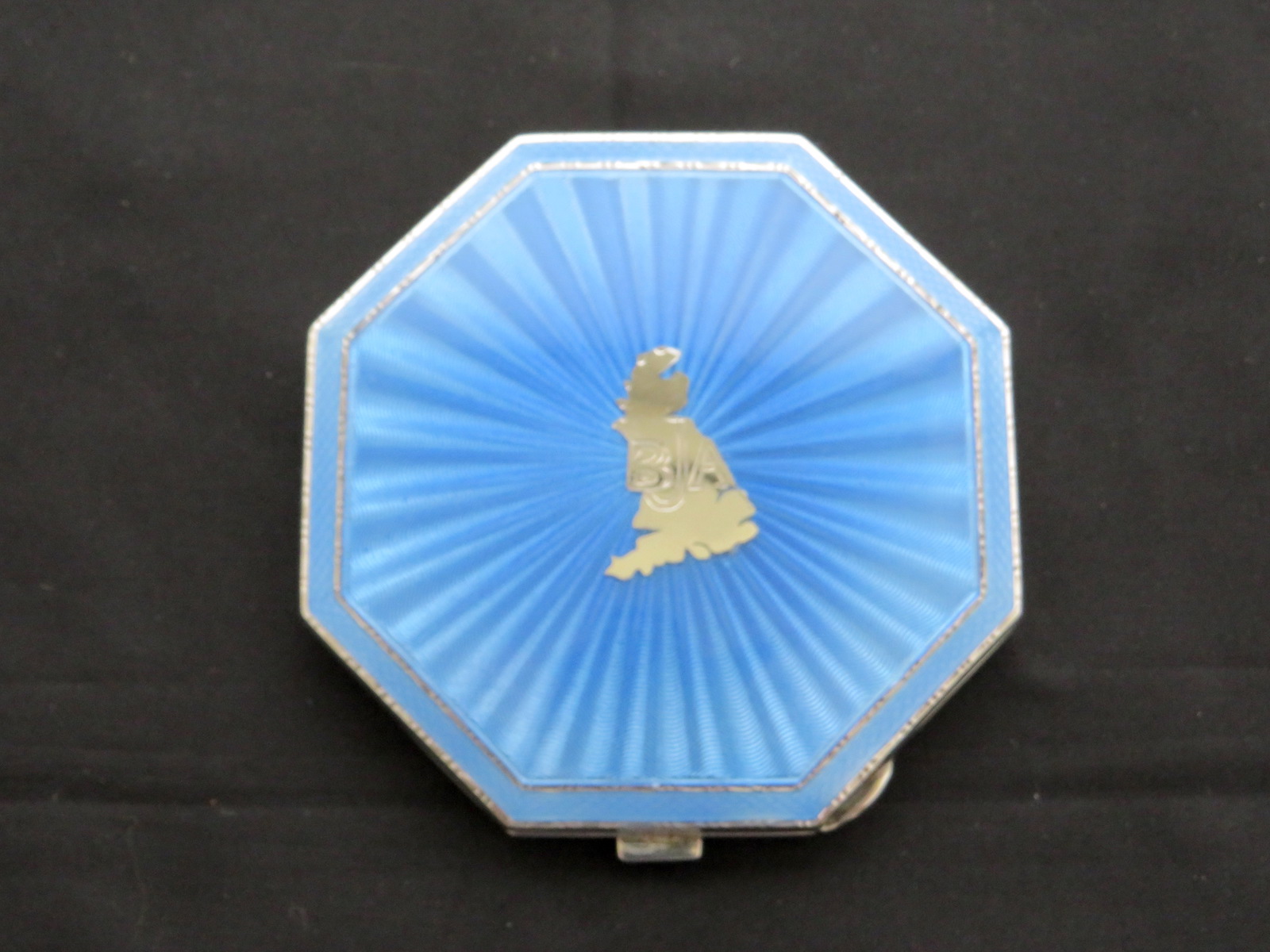 George VI Silver & Enamel Powder Compact, Birmingham, Deakin & Francis Ltd c.1946