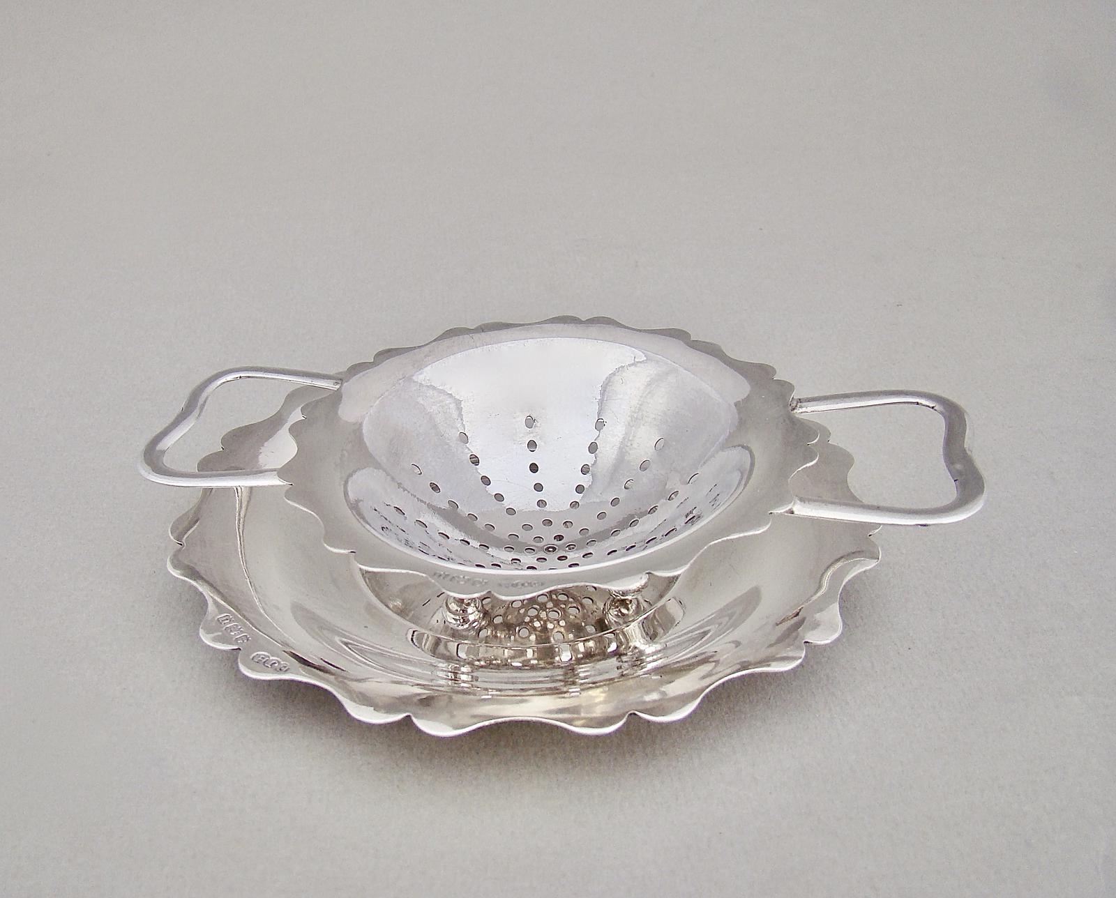 George VI Silver Tea Strainer & Stand by E. J. Houlston, Birmingham 1944