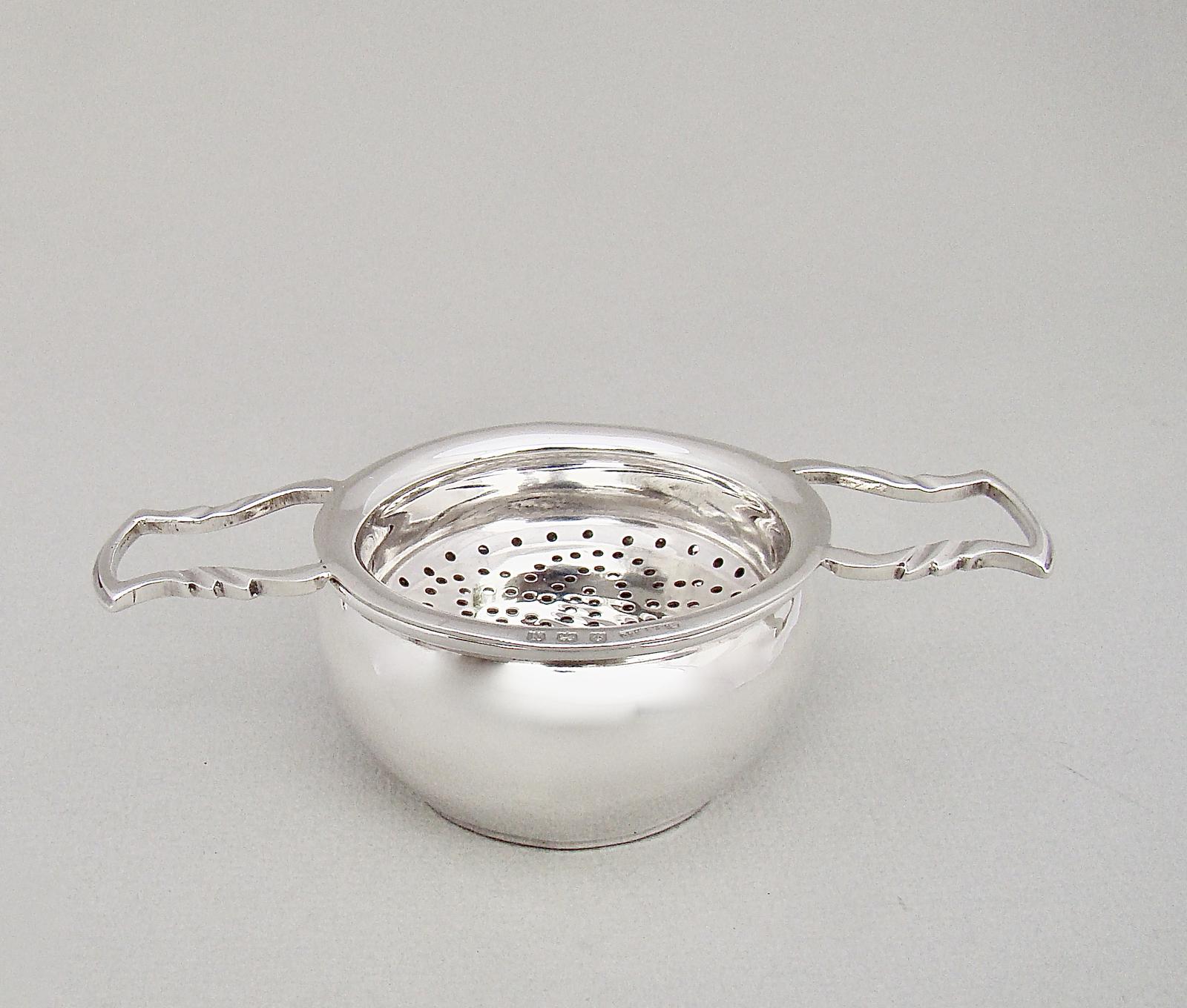 George VI Silver Tea Strainer & Stand by S. Blanckensee & Sons, Birmingham 1937