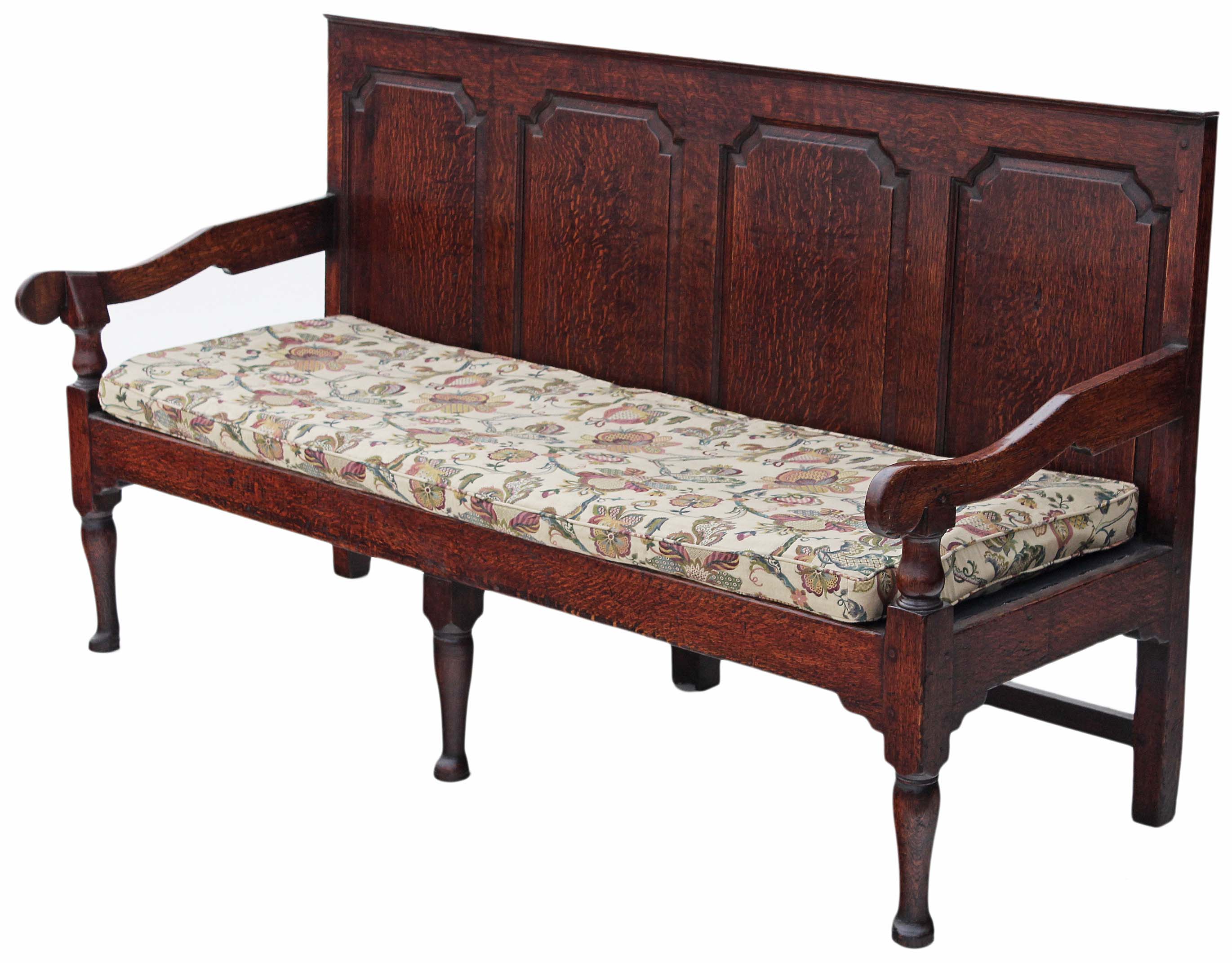 Georgian 18th Century Gothic Oak Settle / Hall Seat / Bench (1 of 1)