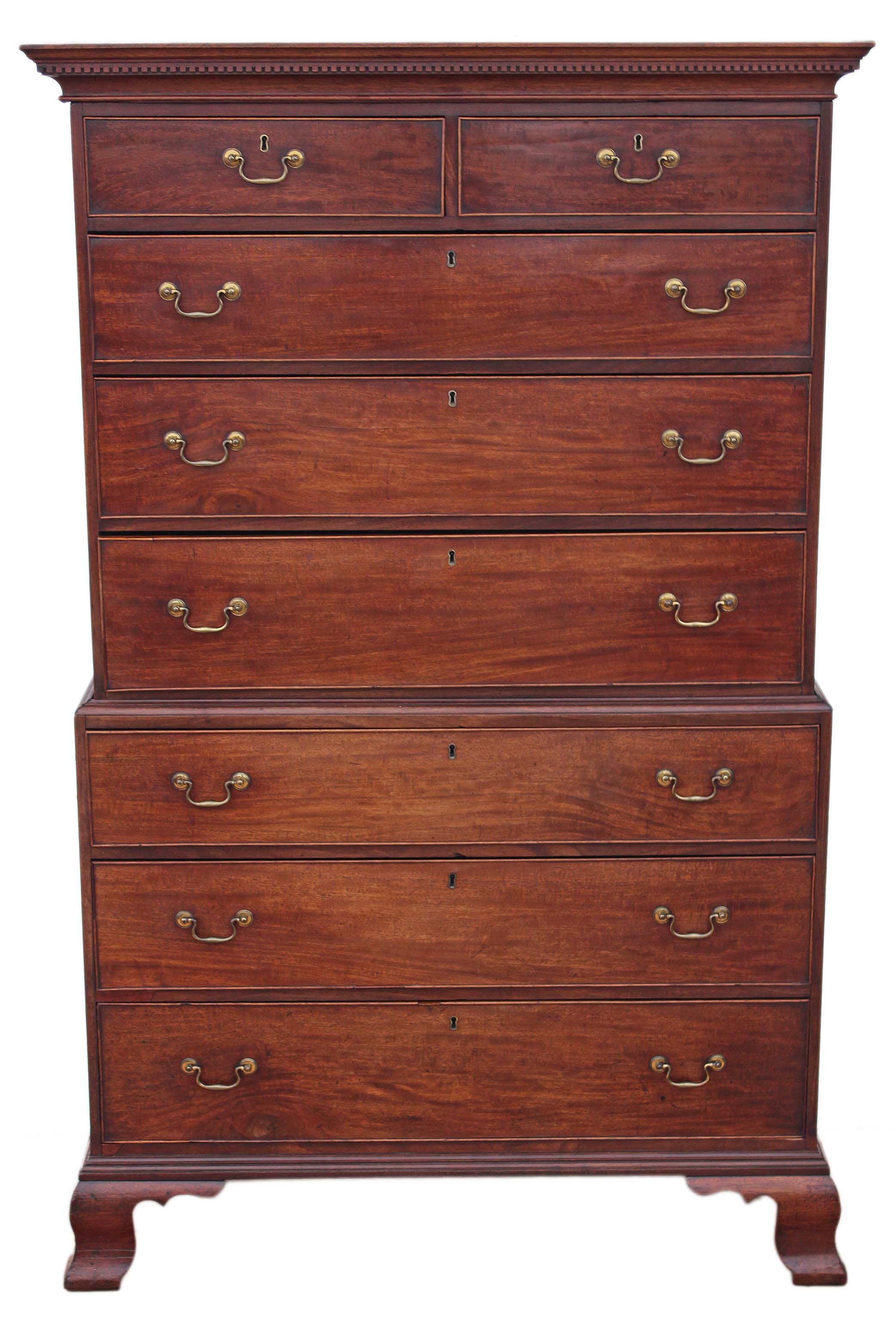 Georgian 18th Century Mahogany Tallboy / Chest on Chest of Drawers