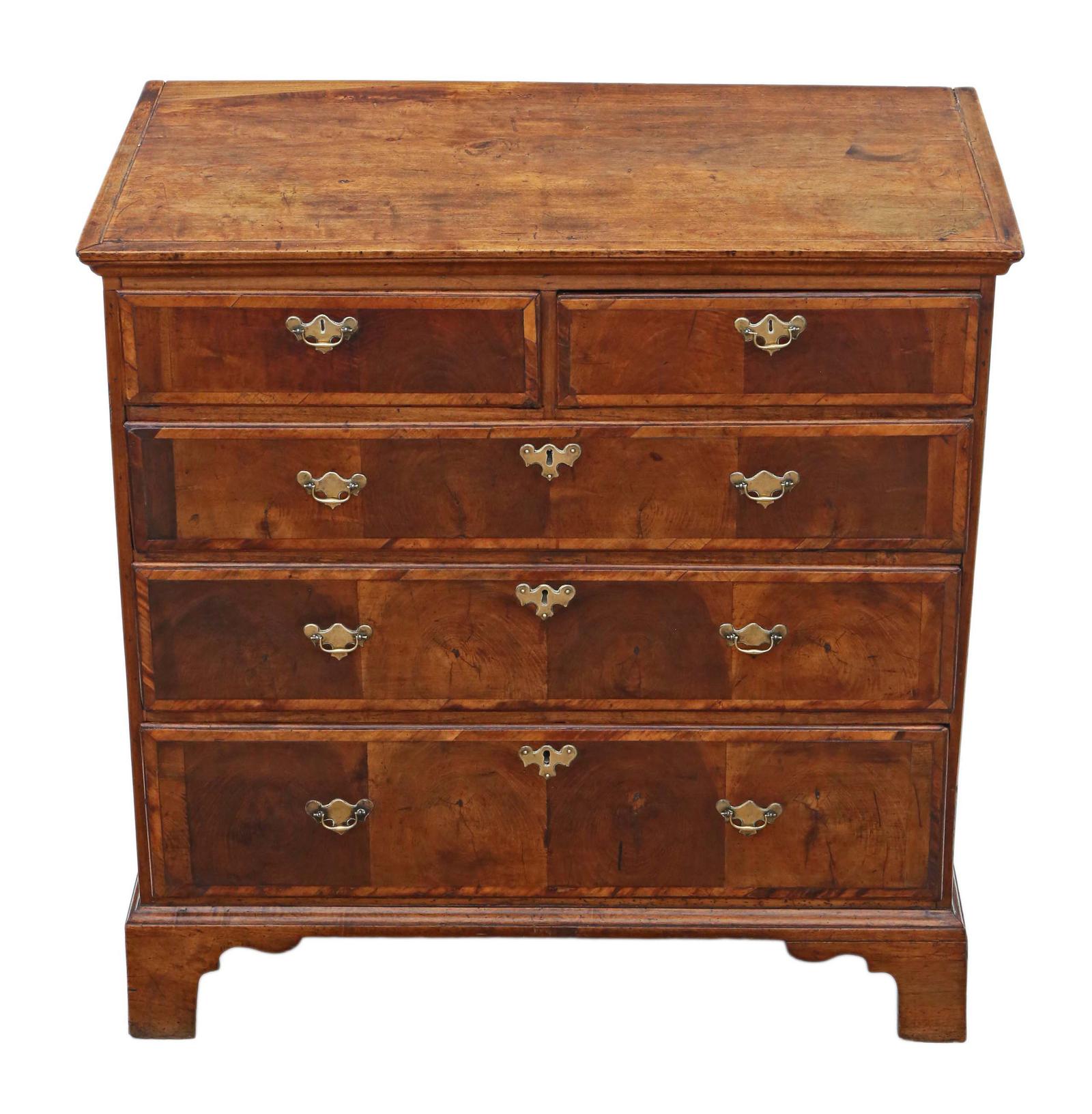 Georgian 18th Century Oyster Walnut & Fruitwood Chest of Drawers (1 of 11)