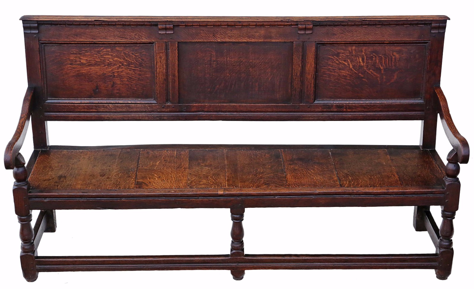 Georgian 18th Century Rare Quality Gothic Oak Settle Hall Seat / Bench (1 of 1)