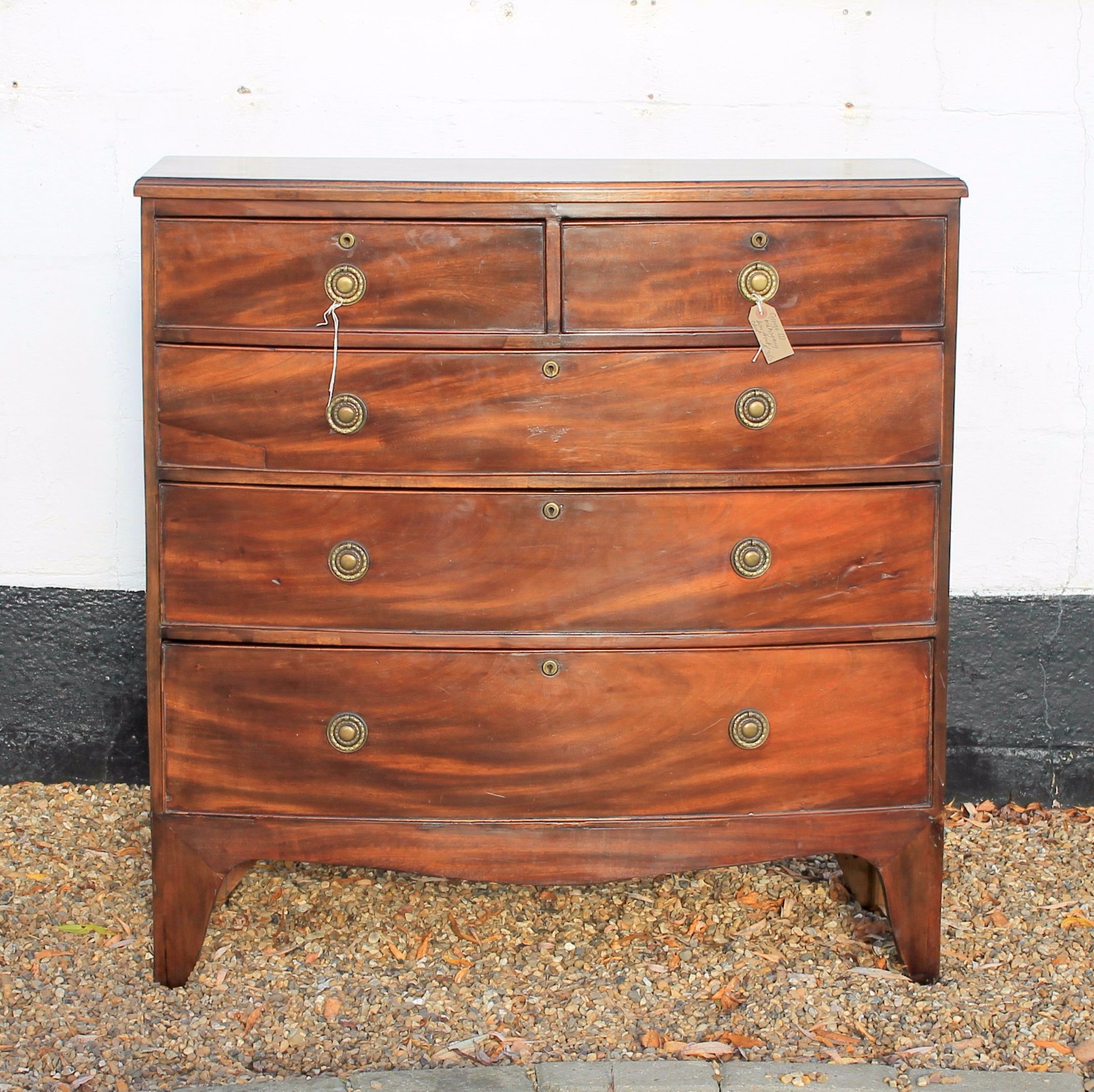 Georgian Antique Mahogany Bow Front Bedroom Chest of Drawers - Two over Three
