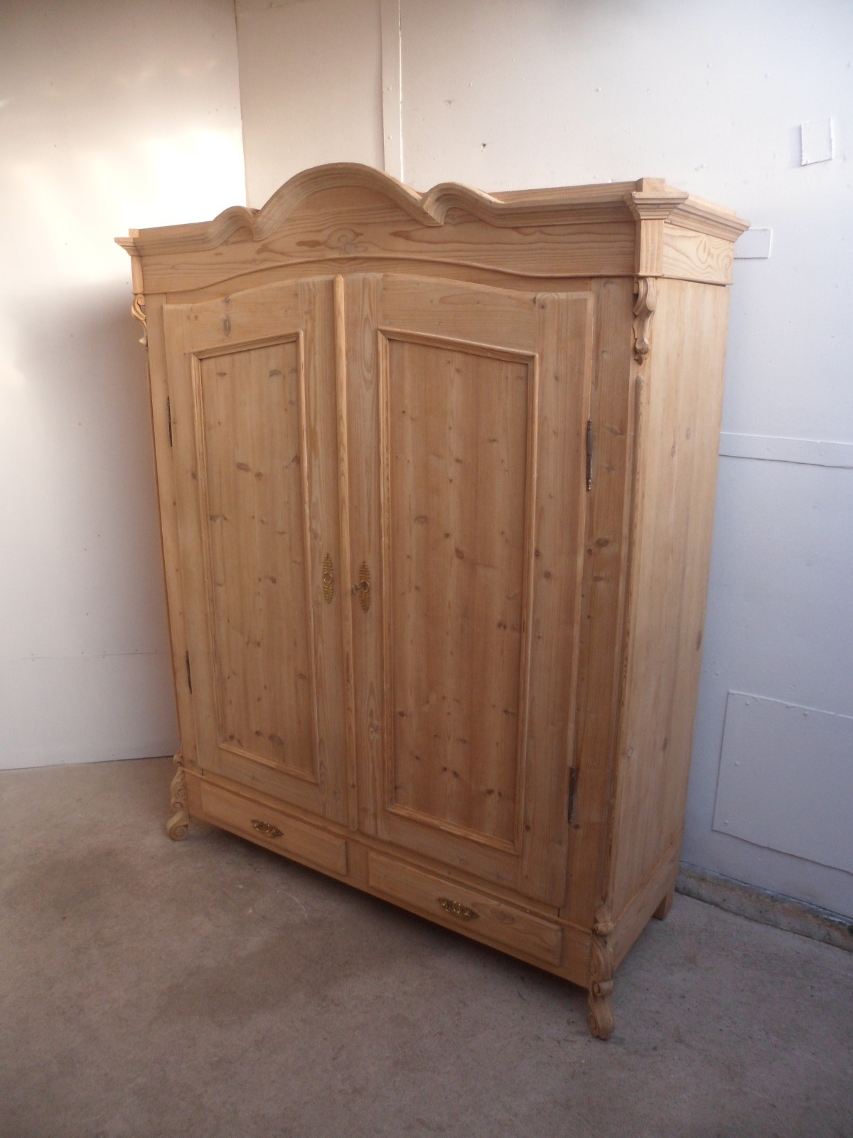 Georgian Antique Pine 2 Door 2 Drawer Knockdown Wardrobe to Wax / Paint