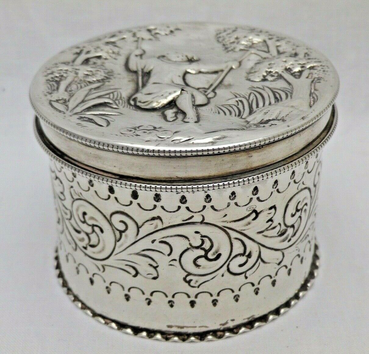 Georgian Antique Solid Silver Cylindrical Box Pictorial Lid 1799