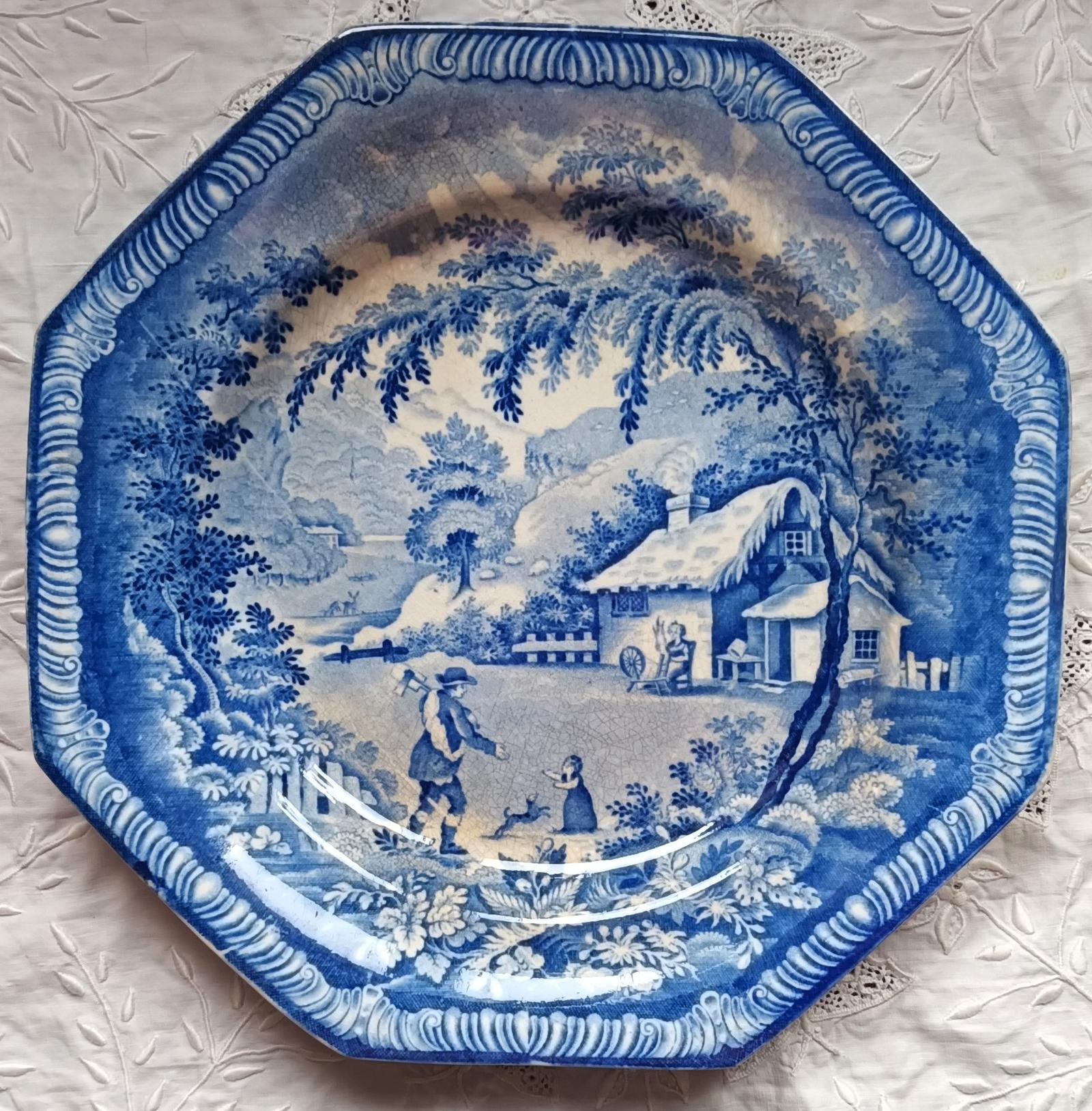 Georgian Blue & White "Returning Woodman" Plate ~ Brameld
