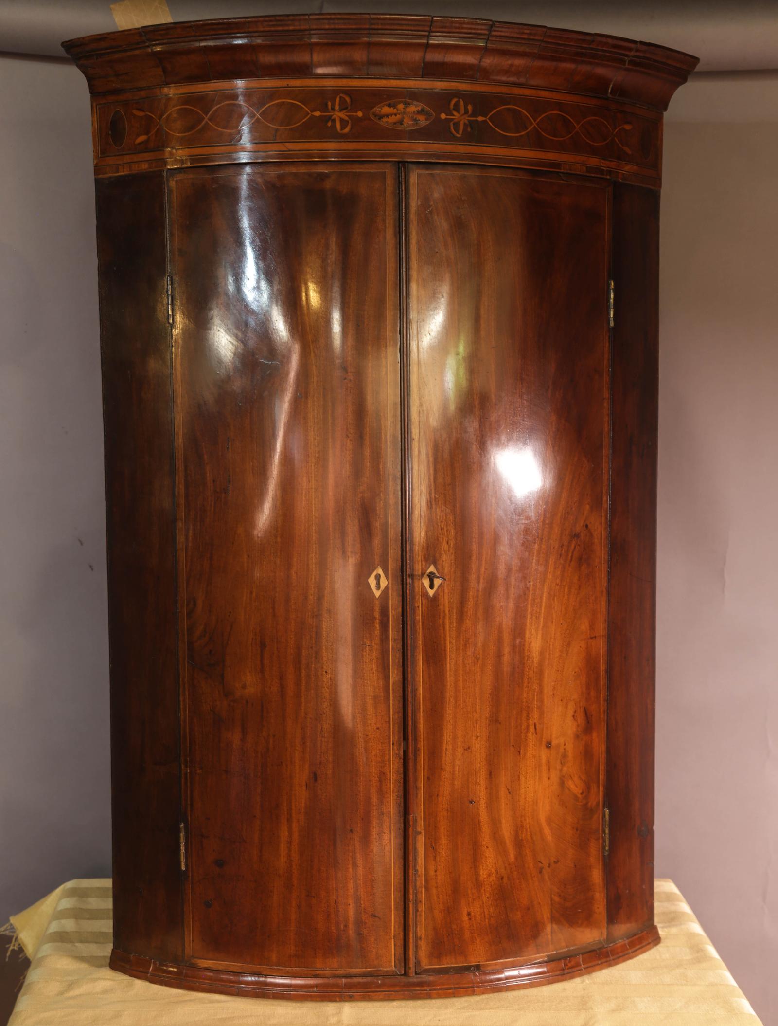 Georgian Bow Front Corner Cupboard Mahogany Inlaid