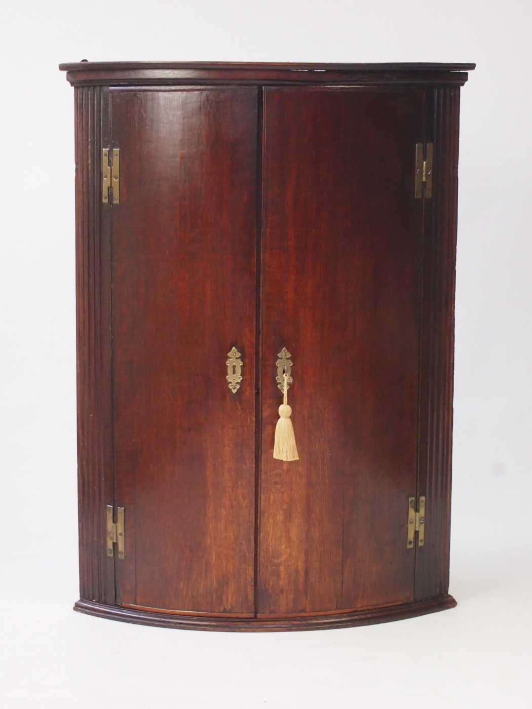 Georgian Bow Fronted Oak Corner Cupboard c.1800