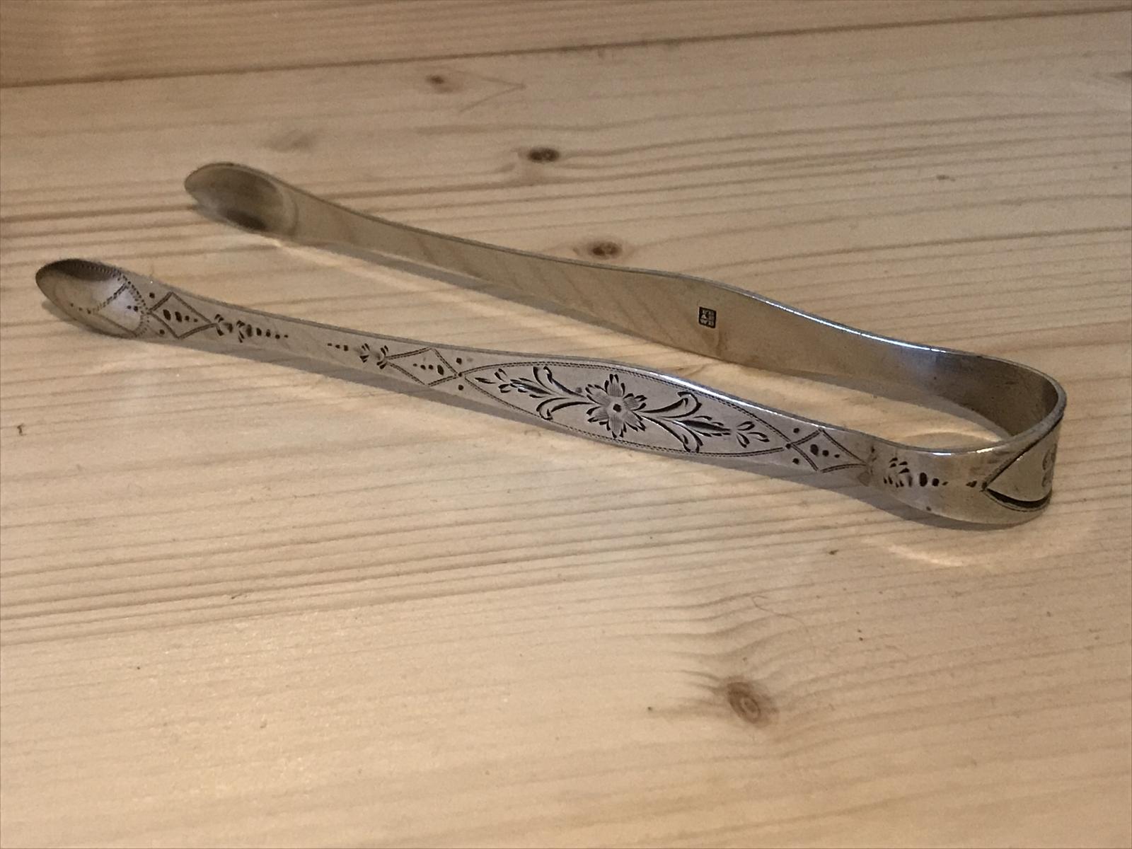 Georgian Bright Cut Silver Sugar Tongs or Nips by Peter, Ann & William Bateman, London, 1800