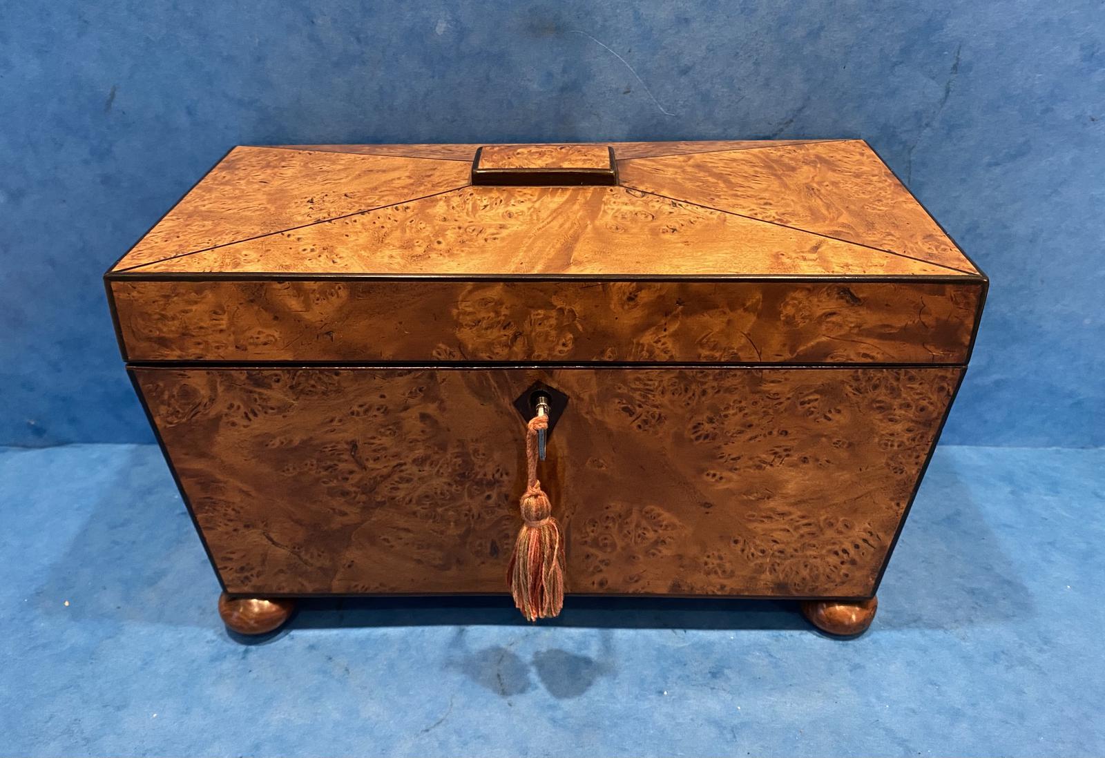 Georgian Burr Ash Twin Canister Tea Caddy