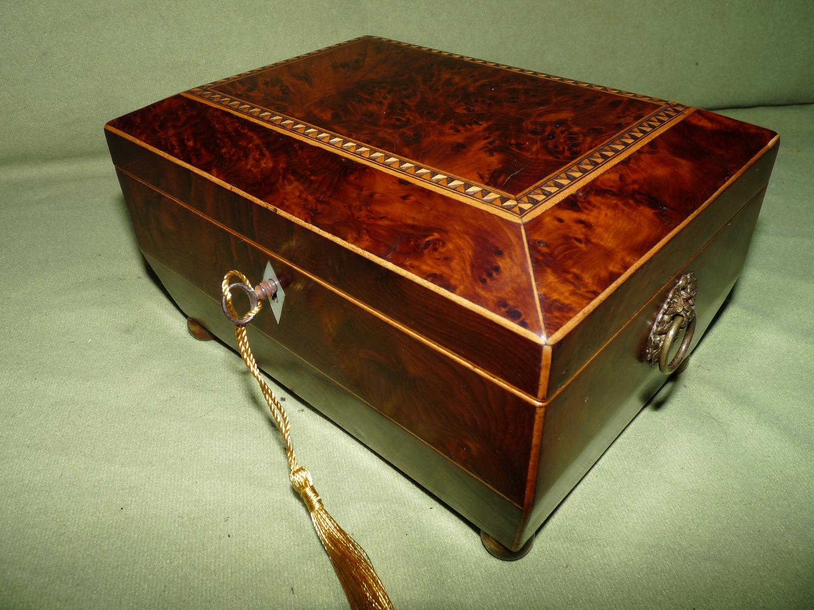 Georgian Burr Yew Jewellery Box + Tray c.1815