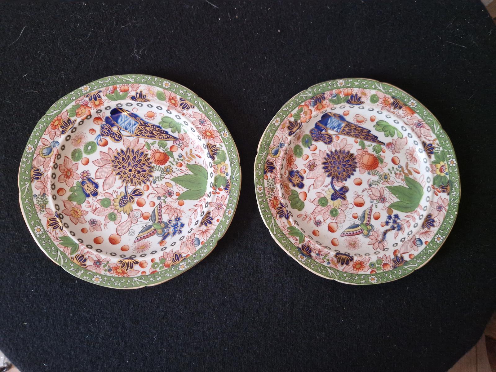 Georgian Butterfly & Chrysanthemum Masons Pair of Plates