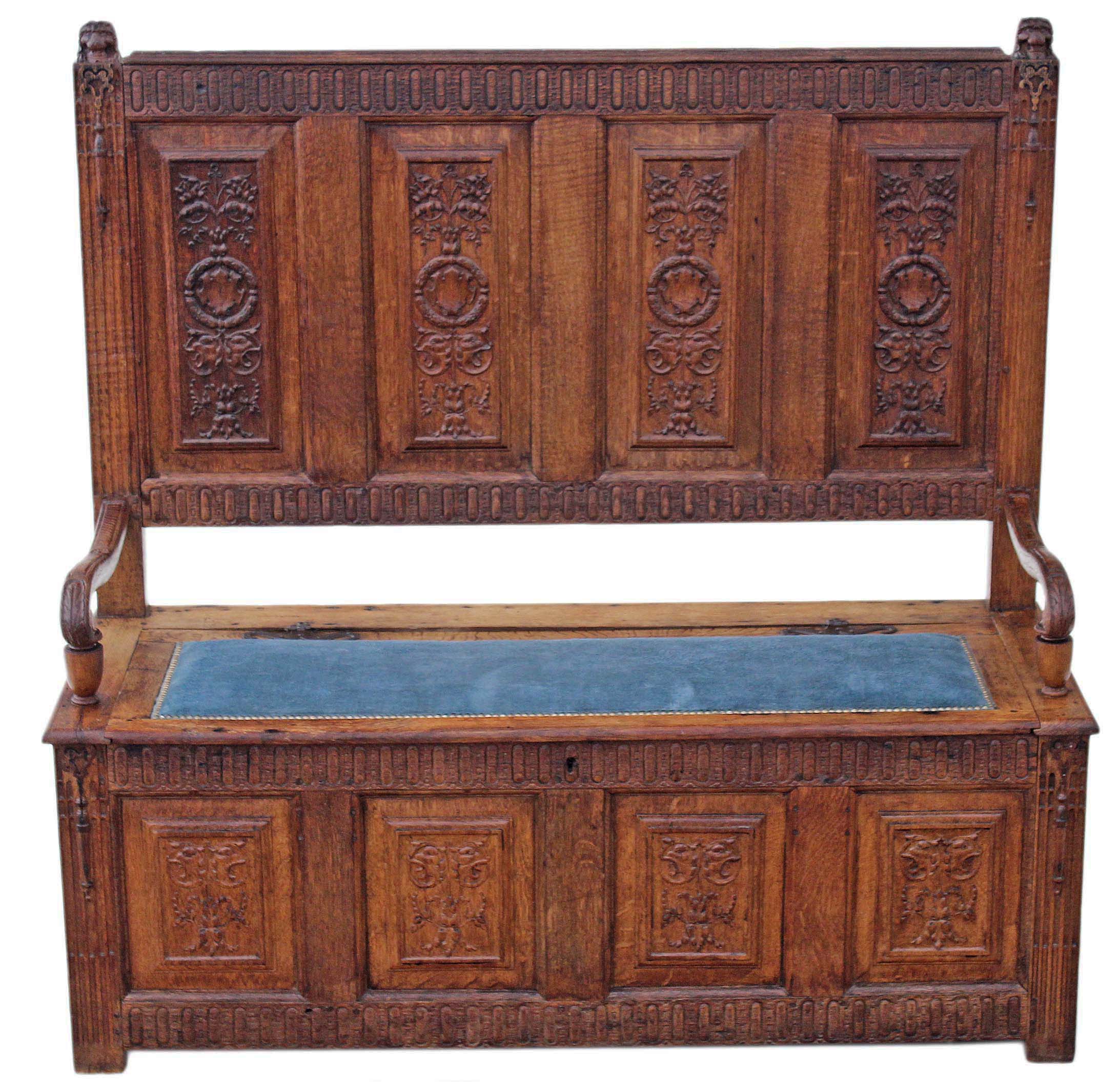 Georgian Carved Gothic Oak Settle / Hall Seat / Bench / Coffer