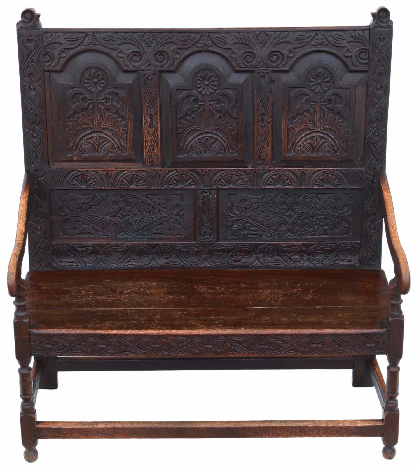 Georgian Carved Oak Settle Bench Seat 18th Century (1 of 1)