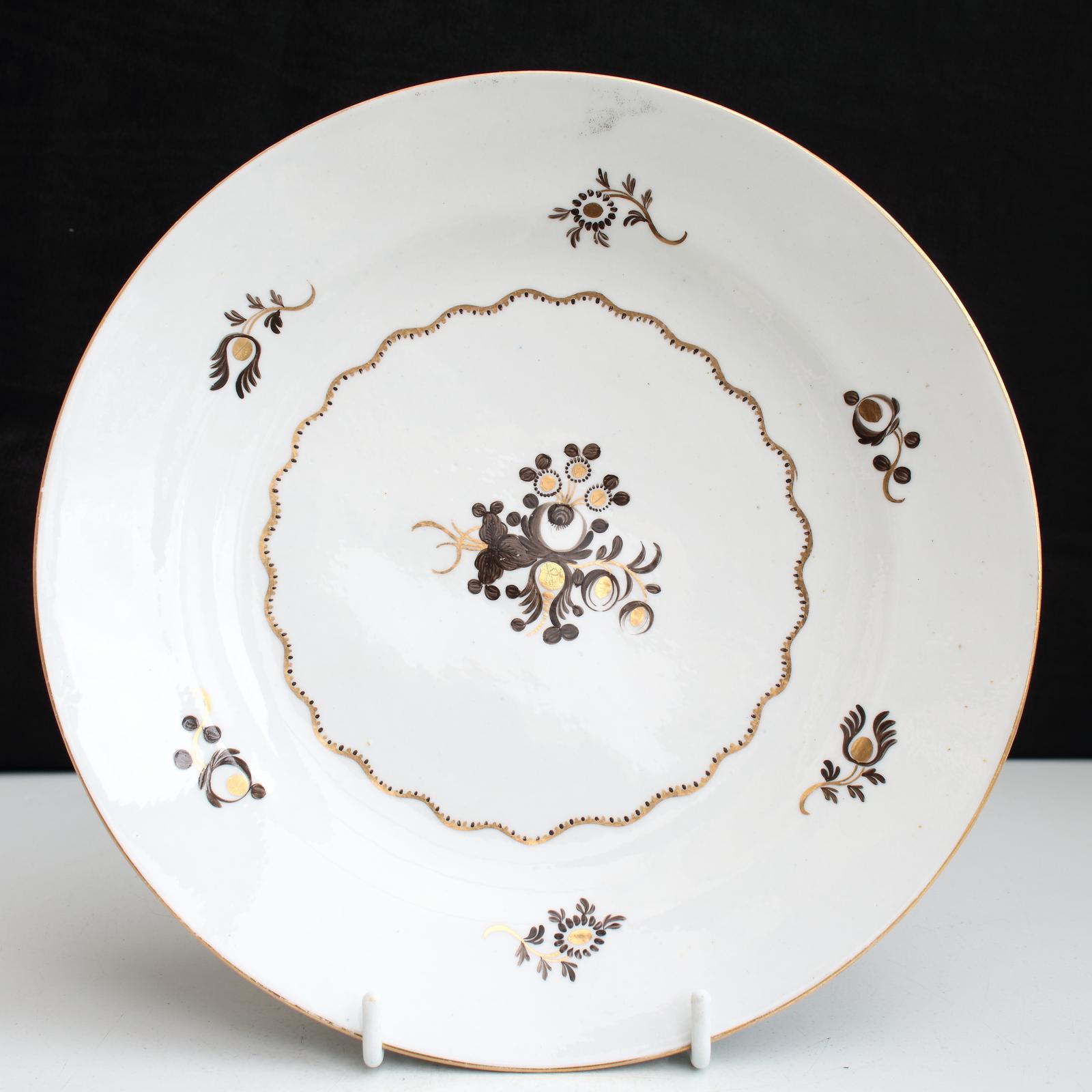 An early 19th century plate with brown and gilt sprigs, Irish pattern number 258, made around 1802-1805 by Chamberlain, Worcester, pattern number painted underneath.