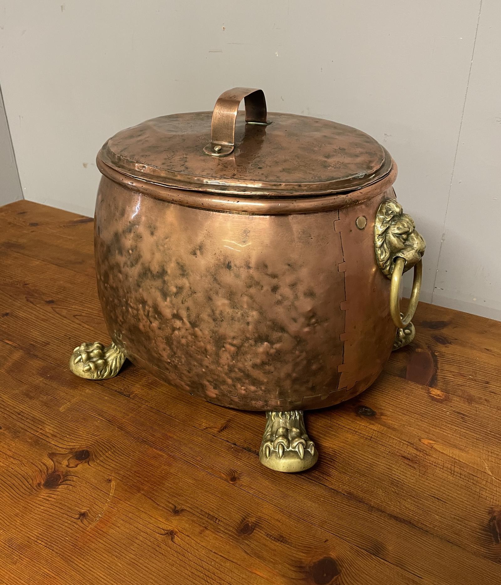 Georgian Copper Coal Box with Lid in Good Original Condition