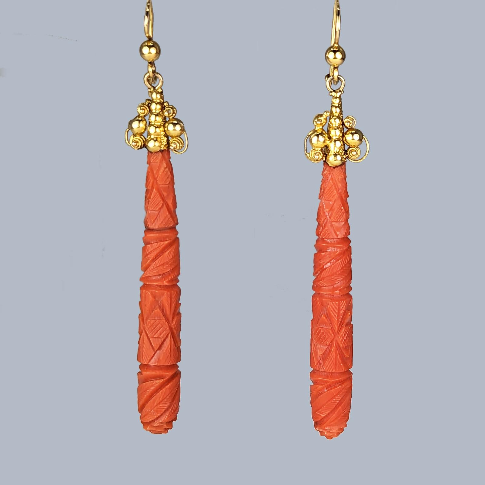 Georgian Coral Drop Earrings Antique Carved Coral Dangle Earrings Circa 1820