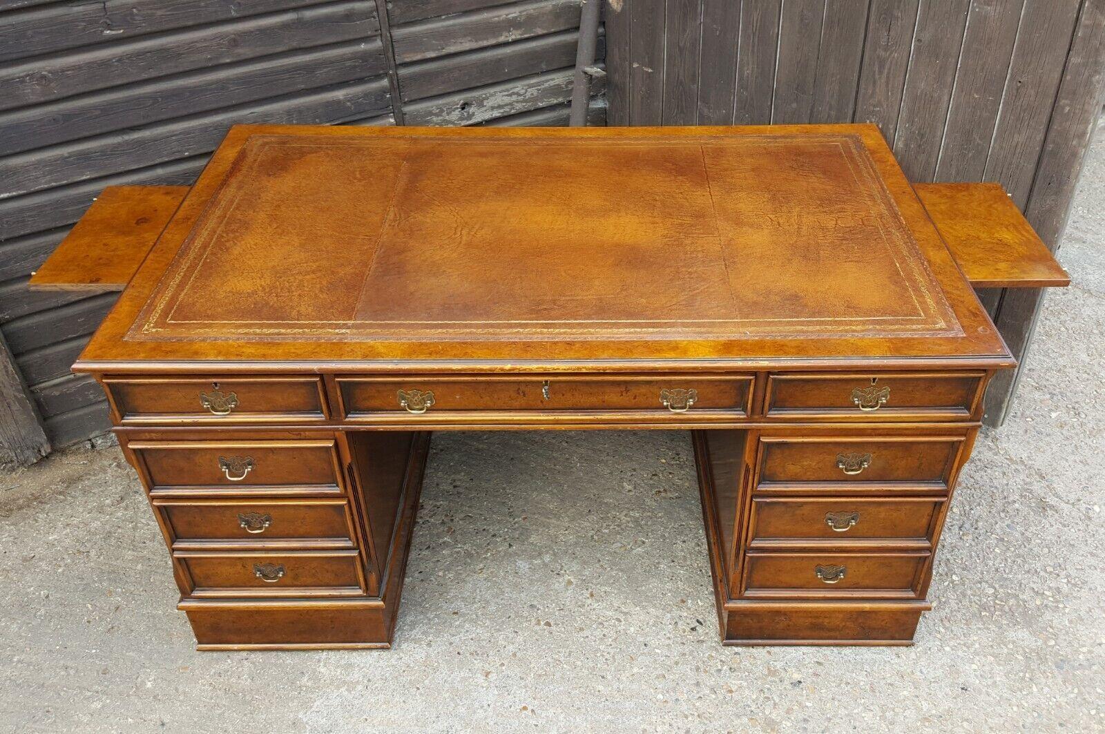 Georgian Design Burr Walnut Pedestal Desk
